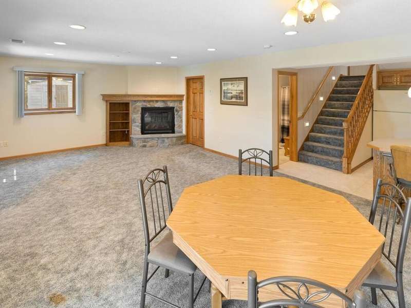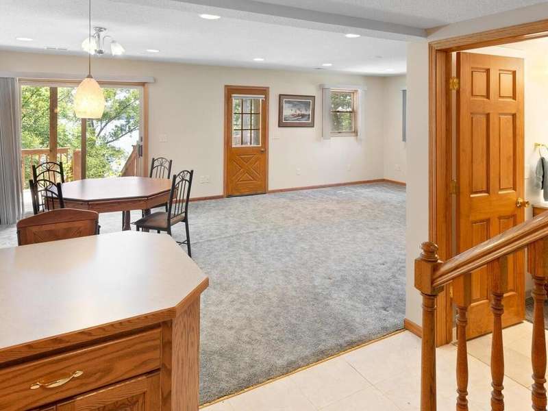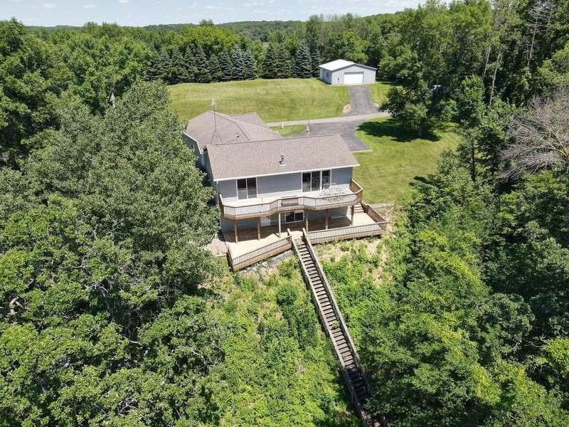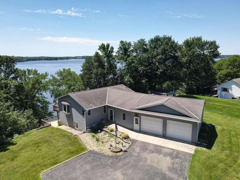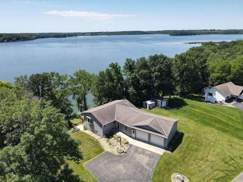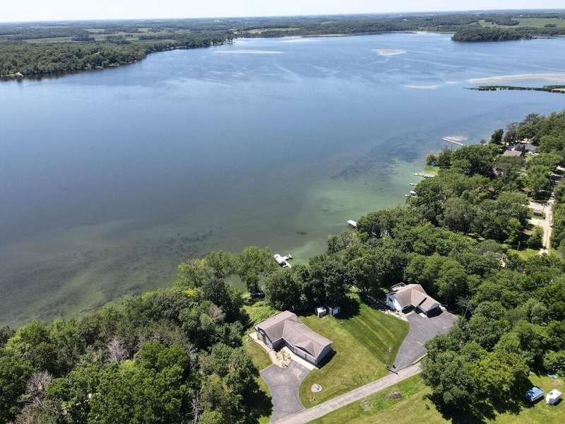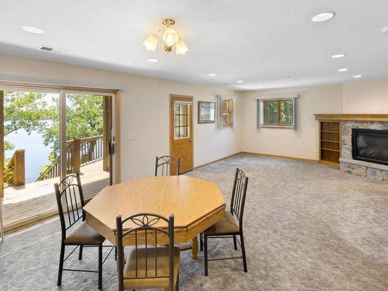 Discover the perfect blend of lake life and work-from-home convenience at this Shields Lake gem! This sale includes two PID parcels totaling nearly 1.5 acres—one lakeside, one across the private road—offering space, privacy, and versatility. Located on the north shore of Shields Lake with 132 feet of shoreline, this 2,500 sq ft walkout rambler features 3 bedrooms, 3+ baths, and an open-concept kitchen, dining, and living area anchored by a cozy gas fireplace. A spacious foyer/mudroom leads to a main floor office and oversized 2-car attached garage. Downstairs you’ll find a large family room with a second gas fireplace, perfect for entertaining. The bonus 36' x 40' insulated, heated pole building with concrete floor and 220 outlet is ideal for hobbies, storage, or workshop needs. Shields Lake Trail is a private road maintained by the neighborhood. Included in the sale are a 48’ aluminum roll-a-dock and a pontoon lift. Pontoon is negotiable. A rare opportunity for lakefront living with room to spread out!
