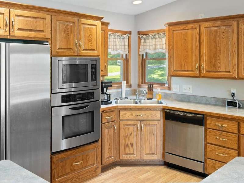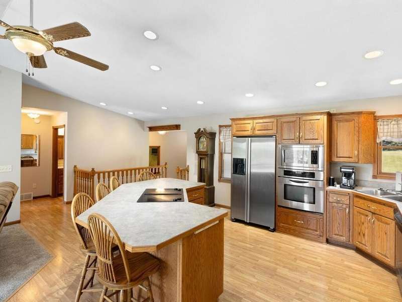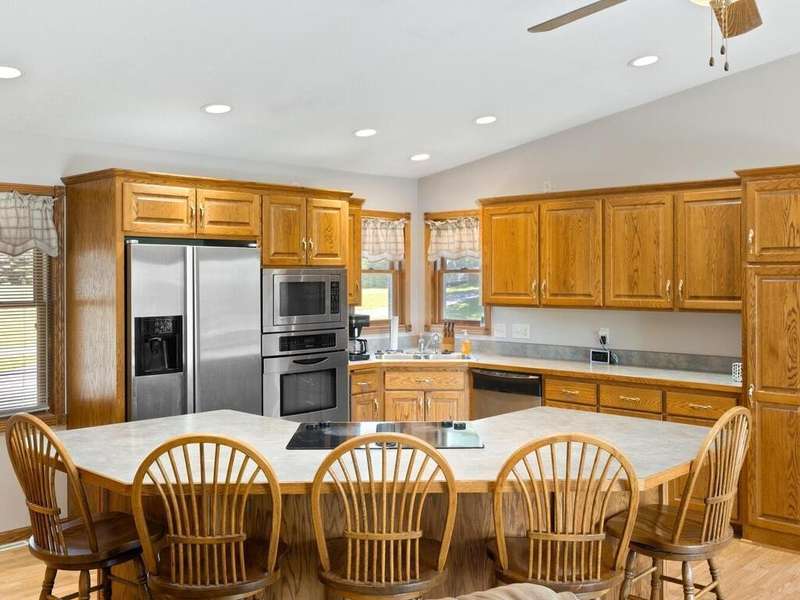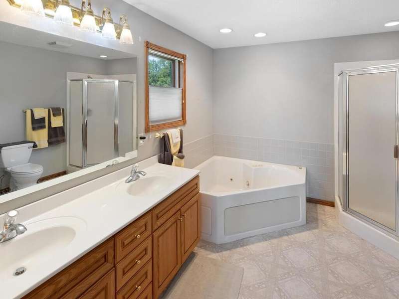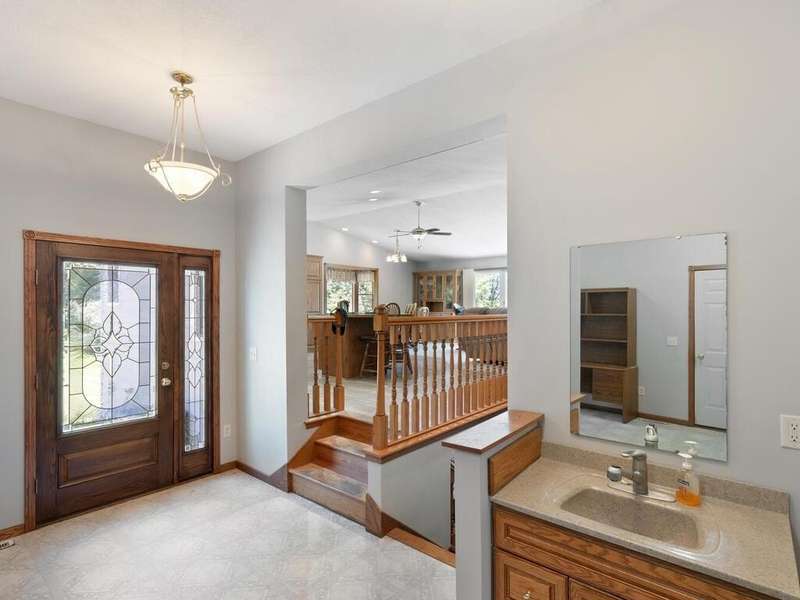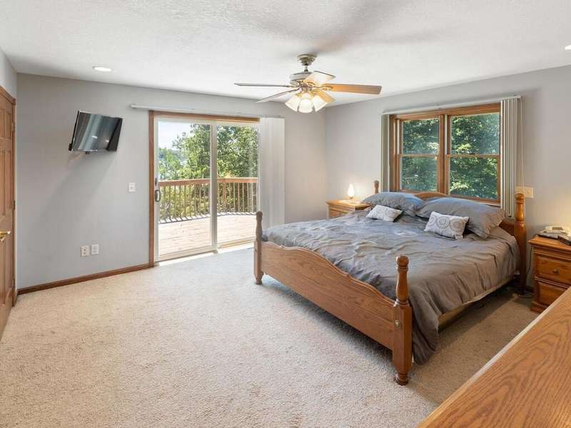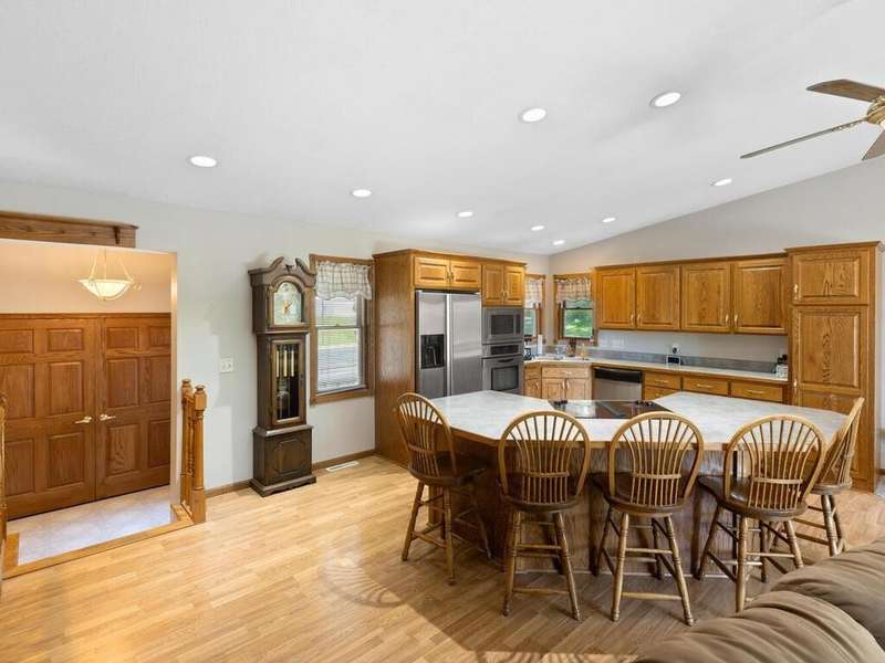 Discover the perfect blend of lake life and work-from-home convenience at this Shields Lake gem! This sale includes two PID parcels totaling nearly 1.5 acres—one lakeside, one across the private road—offering space, privacy, and versatility. Located on the north shore of Shields Lake with 132 feet of shoreline, this 2,500 sq ft walkout rambler features 3 bedrooms, 3+ baths, and an open-concept kitchen, dining, and living area anchored by a cozy gas fireplace. A spacious foyer/mudroom leads to a main floor office and oversized 2-car attached garage. Downstairs you’ll find a large family room with a second gas fireplace, perfect for entertaining. The bonus 36' x 40' insulated, heated pole building with concrete floor and 220 outlet is ideal for hobbies, storage, or workshop needs. Shields Lake Trail is a private road maintained by the neighborhood. Included in the sale are a 48’ aluminum roll-a-dock and a pontoon lift. Pontoon is negotiable. A rare opportunity for lakefront living with room to spread out!