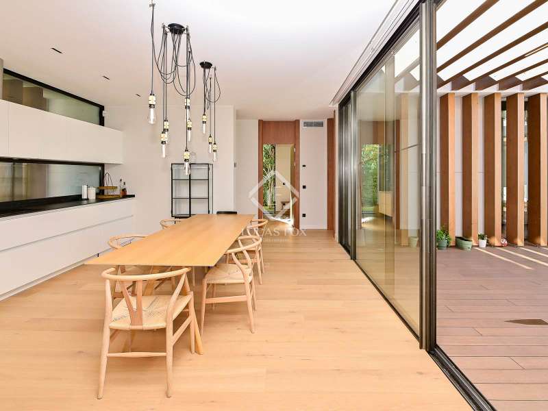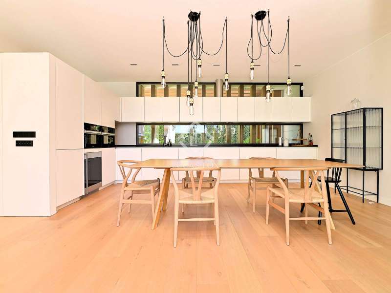 Spectacular, newly built contemporary villa in impeccable condition and ready to move into. Located in a quiet and prestigious residential area of S'Agaró, this property combines modern design, comfort, and top-quality materials, just minutes from the sea and all amenities. A perfect choice for both a family-friendly residence and a holiday home, as well as an excellent investment on the Costa Brava. Spread over two floors, the villa stands out for its spaciousness, high ceilings, and large windows that flood the rooms with natural light. The main floor offers an elegant entrance, a contemporary living-dining room with direct access to the garden, and a fully equipped designer kitchen with high-end appliances , Italian furniture, and porcelain countertops. In total, it has four double bedrooms and three bathrooms, two of them en suite, as well as a guest toilet and a laundry area. Exterior, the property offers a beautiful, level garden with a private pool, sunny terraces, and seating areas ideal for enjoying the Mediterranean climate. It also features a private garage and additional parking space. Equipped with aerothermics, underfloor heating, air conditioning, double-glazed windows, automatic blinds, and an alarm system, this villa guarantees maximum comfort and energy efficiency throughout the year. A modern, elegant, and functional residence in one of the most exclusive enclaves on the Costa Brava.