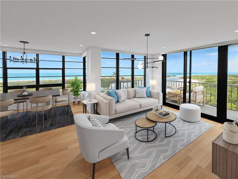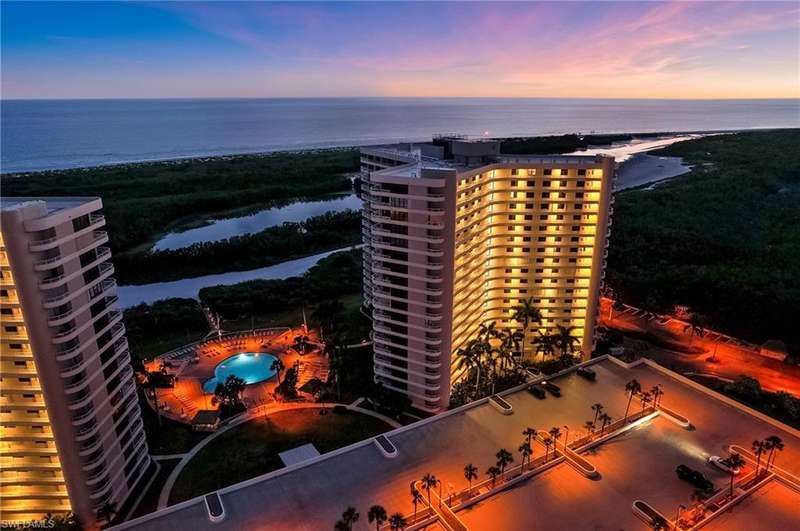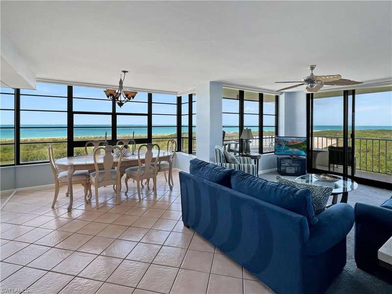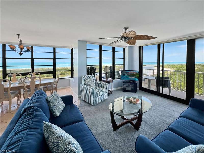 Rare opportunity to own a high-floor beachfront condo in one of Marco Island s most secure, amenity-rich communities ideal for both personal enjoyment and strong rental potential. This is the investment you ve been looking for on Marco Island, with 7-day rentals allowed. This 10th-floor, fully furnished two-bedroom residence offers sweeping views of the Gulf and Big Marco Pass, with west-facing exposure that captures jaw-dropping sunsets year-round. The 1,100 square-foot layout features impact glass, a wraparound balcony, and an efficient floor plan that maximizes the view corridor from every major room. The building offers highly desirable short-term rental options and is part of the South Seas Club, a 24hr gated community with robust amenities including a heated resort-style pool, fitness center, tennis, pickleball, boat slips, and private beach access. Two assigned covered parking spots are included. Located just minutes from Marco s top dining, shopping, golf, and executive airport