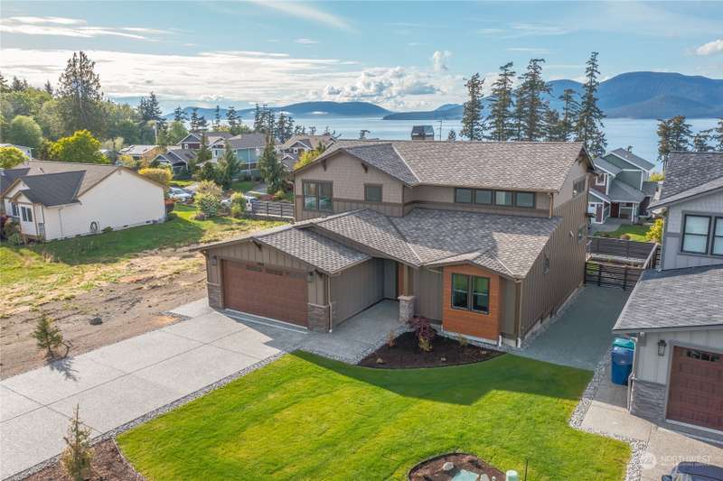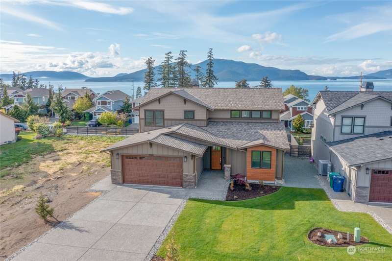NEW CONSTRUCTION! Home was under construction when first listed now completed March 2024. Quality construction in this amazing Keystone Building Services home. Main level living with an open concept layout offering views of Guemes Channel & San Juan Isl. Inviting stylish kitchen boasts high-end appliances & walk-in pantry w/built-ins. Step onto the partially covered deck with overhead heaters for seamless indoor/outdoor living. The main level features an office, powder rm, laundry & classy primary bdrm with deck access & spacious en-suite w/heated floors. Upstairs, large family rm with fireplace, full bth & 3 bdrms await. Plus enjoy wired electric car charger. Nestled near Anacortes Forestlands, San Juan Isl Ferry, & town amenities.