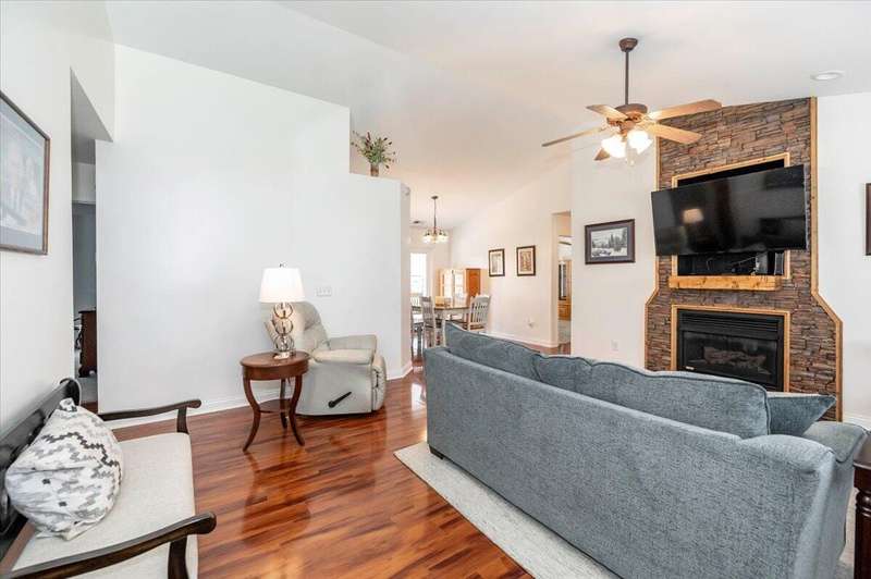 Updated 1 level home ready for new owner, great room with gas Fireplace, kitchen offers newer appliances, snack bar & dining area. Split bedroom plan offers large walk in closet, bath with double vanity, tile flooring. 2 additional bedrooms with hall bath between, nice closet space throughout. Separate laundry room.