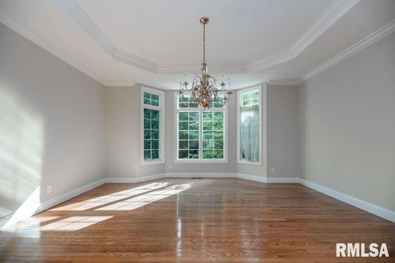 Nestled on a stunning wooded lot, this exquisite 4-bedroom home offers the perfect blend of elegance and tranquility. Step into the sun-filled foyer and be greeted by gleaming hardwood floors that flow throughout the main level, where a spacious den and a grand fireplaced great room create inviting spaces for work and relaxation. The formal dining room seamlessly connects to the living room, ideal for entertaining. Upstairs, the master suite impresses with a triple crown ceiling and a luxurious bathroom, while the 2nd bedroom enjoys its own private bath. Bedrooms 3 and 4 share a convenient Jack-and-Jill setup. The walkout basement features a generous rec room and abundant storage! Enjoy the large deck that overlooks the serene, tree-lined backyard. With a new roof installed in 2015, this home is as practical as it is picturesque.