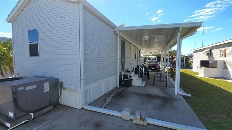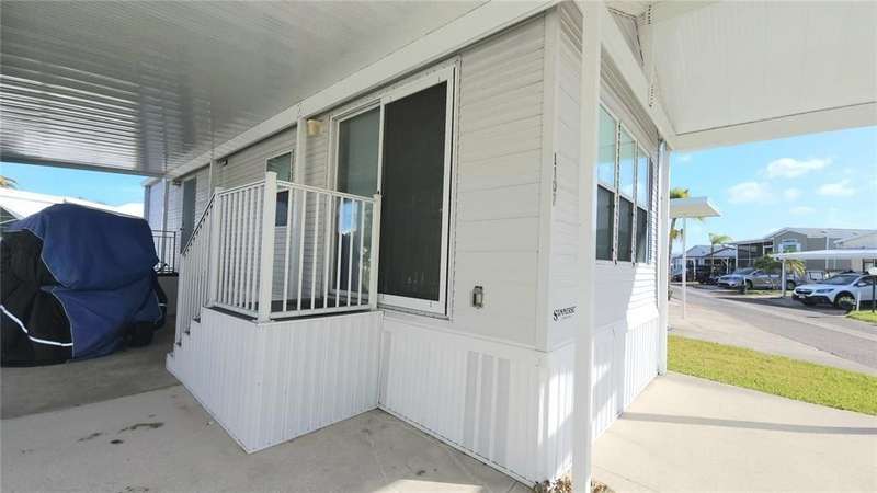 UPDATED SINGLE WIDE MOBILE HOME IN ACTIVE 55+ COMMUNITY! Stay warm in Florida in this furnished and well-kept home with one bed, one full bath, and large carport. The bedroom has a large built-in closet. The bathroom has a tub/shower and linen storage. There is a stacker washer/dryer. The carport gives plenty of covered parking and could also be used as a patio area. Shingle roof (2020). Central A/C (2016). Hot water heater (2023). The community of Sugar Creek Country Club features two swimming pools, heated spa, tennis & pickleball, shuffleboard, fitness room, club house, workshop, and an active social calendar during the winter months. LOW HOA FEES of just $525 quarterly which includes water, trash, sewer, basic cable, internet, and grass mowing. Enjoy this community's proximity to the Braden River and River Links Golf Course. Sorry this is not a dog lot.