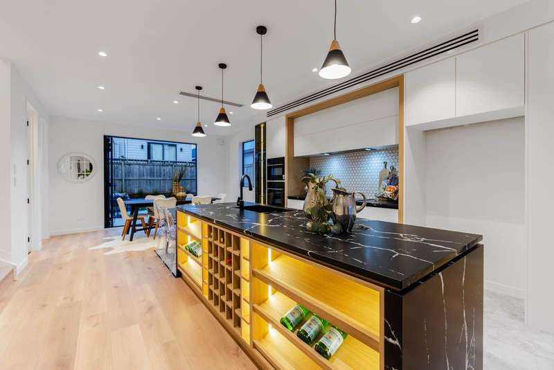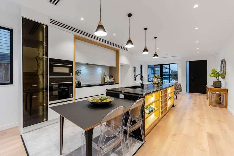 Step into modern luxury with this brand-new, high-spec home showcasing quality design and premium finishes throughout. The striking façade blends weatherboard, cedar, craft stone, and James Hardie Fibre Cement, creating a stylish street presence that sets the tone for what lies within. Inside, you’ll find six generous bedrooms (including two master suites with walk-in wardrobes and indulgent bathtubs), 4.5 bathrooms and three versatile living areas to cater to every lifestyle need. The sleek open-plan kitchen, dining and living area flows effortlessly to a sun-soaked deck, while the upstairs lounge extends to a balcony with bifold doors for elevated outdoor enjoyment. Fully equipped scullery is a bonus. A thoughtfully designed downstairs wing offers two bedrooms, one bathroom, and a separate living space, perfect for extended family, guests, or independent living. With double garaging, additional on-site parking, and low-maintenance grounds, this home combines convenience with sophistication. Positioned in the heart of Hobsonville, you’re only a short stroll from Scott Point Beach and coastal walkways, offering a relaxed lifestyle by the water. Families will appreciate zoning for Scott Point Primary and Hobsonville Point Secondary, ensuring excellent schooling options. CCC is issued and with the home vacant, ready to move in, and vendors motivated to sell, this is a rare opportunity to secure a quality build in one of Auckland’s most desirable coastal communities.