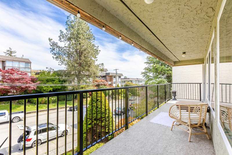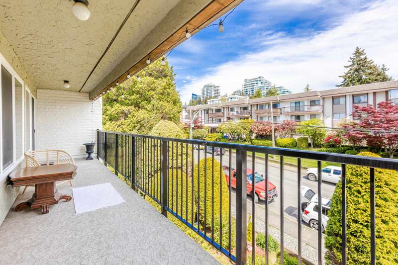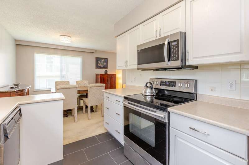 The DOGWOOD. Estate Sale in this sought-after 55+ community in the heart of White Rock. Bright, sunny, top-floor end unit boasts a 28 foot long balcony perfect for sipping coffee and watching the sun rise. This large 1117 sq ft 2 bed/1.5-bathroom suite offers ample natural light and plenty of space to relax. It accommodates house size furniture making it great for downsizing. With in suite laundry, one parking stall and one storage locker included, you'll have everything you need. Bring your decorating ideas and enjoy the best of White Rock living with its beautiful beaches, shops, and restaurants just a short walk away. Plus, with easy access to downtown Vancouver, you can enjoy the best of both worlds. Strata fees cover heat and hot water. Pets allowed. Motivated Seller!