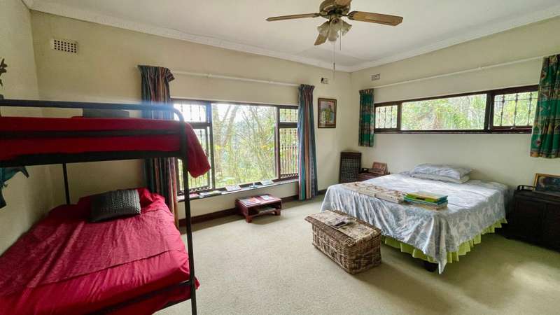 HARMONY HALL This golden oldie has loads of potential. If classic colonial is your style, then you will love this home. The home overlooks the Umzimkulu River and is surrounded by beautiful forests. The vast vista is home to a variety of fauna and flora. The colonial architecture is prevalent in the high ceilings, certain flooring and a beautiful fireplace. The lounge and dining area are quite grand with lots of light pouring in from the large windows. There are 2 wings of the house, the second being an add on and has 4 bedrooms, a lounge, dining area and a bathroom. The original part has a kitchen, 2 dining areas, a large lounge with a fireplace and huge windows, a main bedroom with a bathroom ensuite and a large dressing room which could be an 8th bedroom. There are 2 additional bedrooms and 1 bathroom. The verandah overlooks the swimming pool. Addition accommodation includes a 2 bedroom cottage and a bachelor pad.
