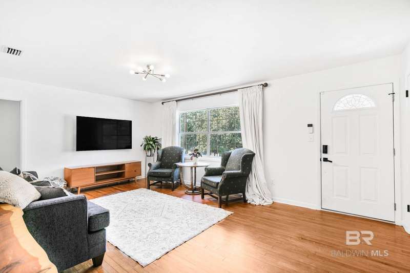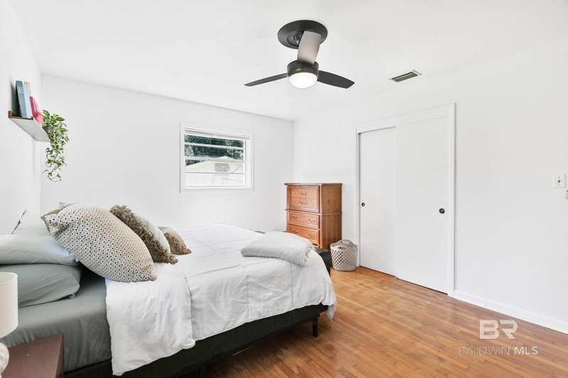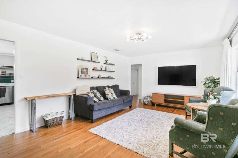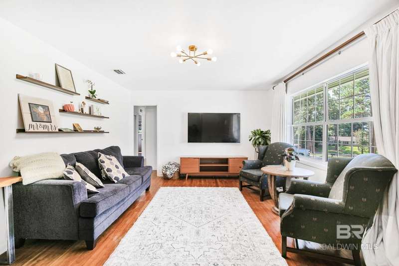 From the front yard, the open green space creates a sense of depth and breathing room. Downtown Fairhope is just a short walk away, making it easy to slip out for dinner, shopping, or local events.Built in 1964, this mid-century ranch emphasizes single-level living with wide windows, clean lines, and original wood floors that set the tone for timeless character. Later expansions added square footage and multiple living areas, creating flexibility for entertaining, guests, or workspace. Four bedrooms and two baths provide options that adapt to changing needs.Recent updates include a fortified metal roof, a new HVAC system with ductwork and insulation, and a tankless water heater. These improvements provide efficiency and durability while leaving room for the next owner to bring in their own sense of style.At $499,000, this property combines mid-century design, authentic details, and added space in a location that keeps Fairhope's downtown energy within walking distance. Buyer to verify all information during due diligence. Buyer to verify all information during due diligence.