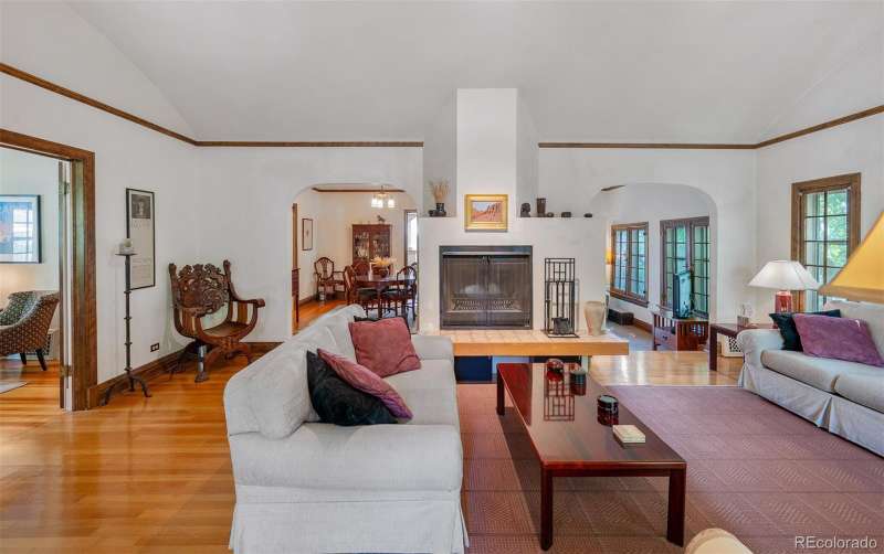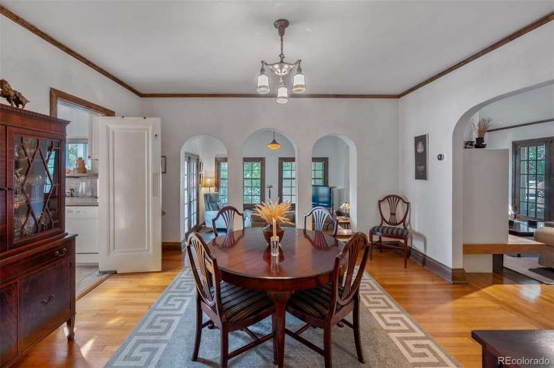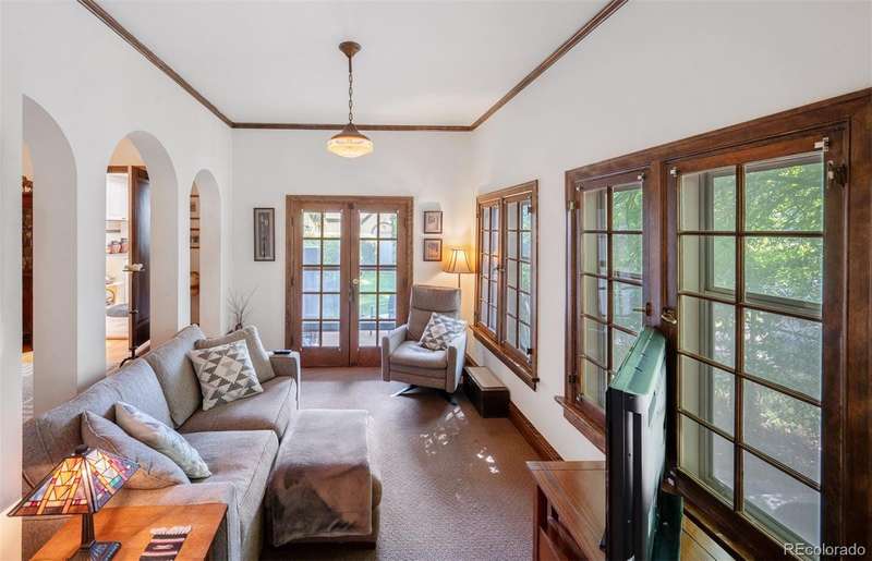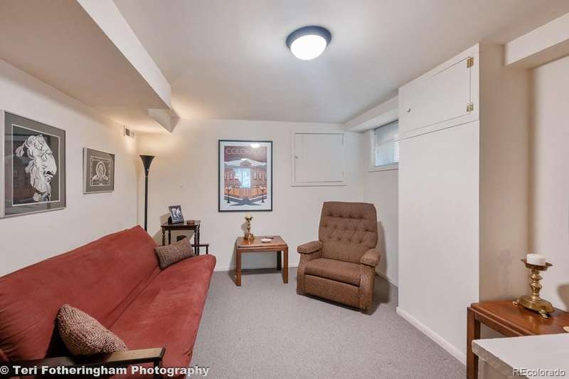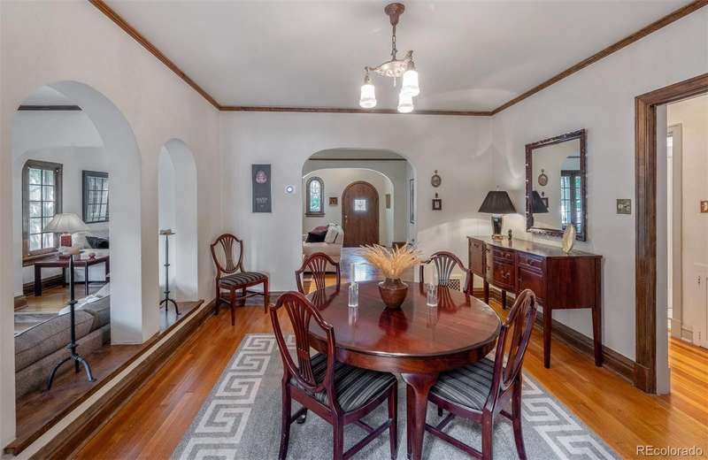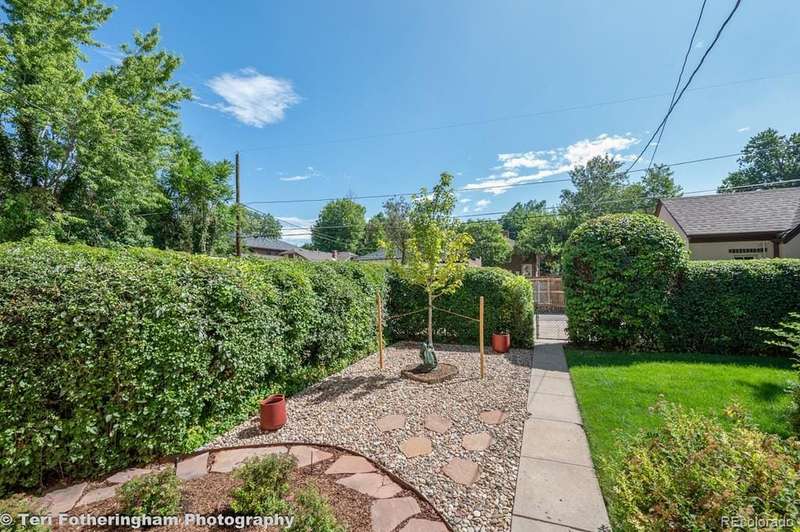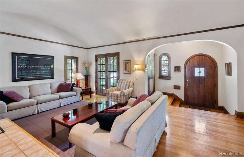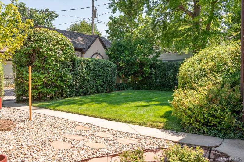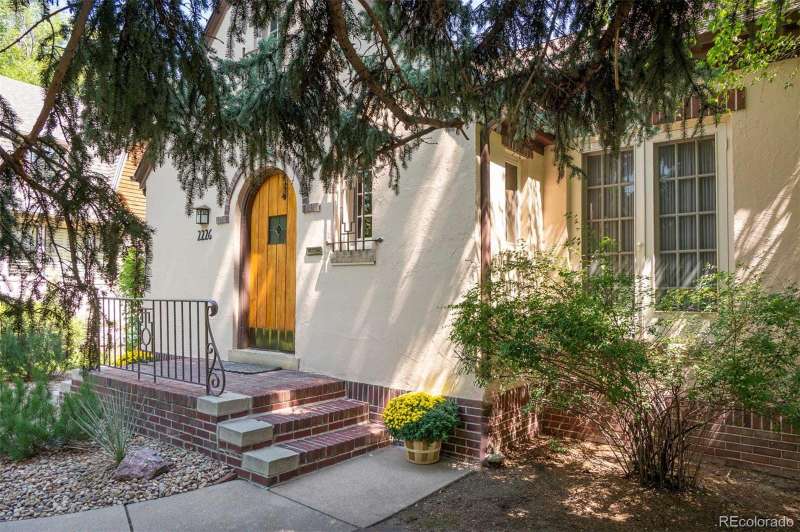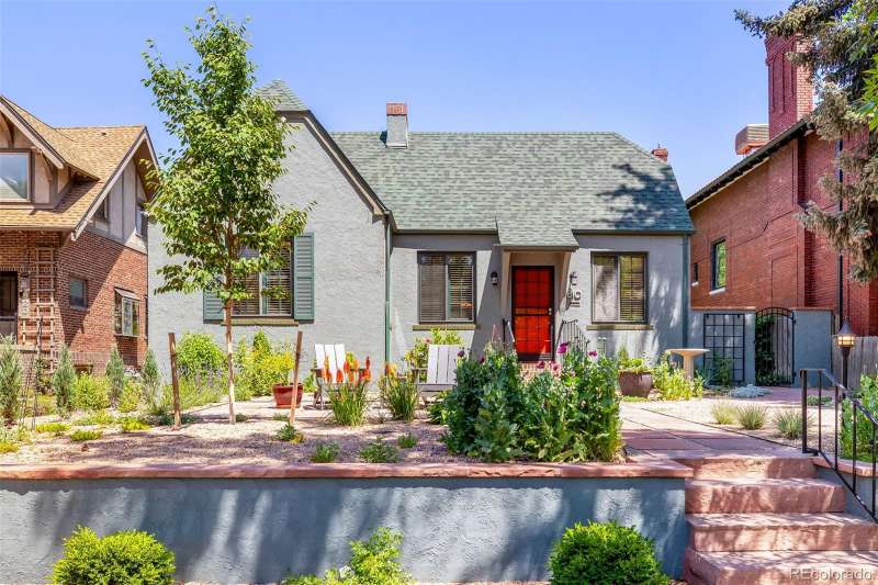 An absolute jewel box Tudor on beautiful Park Hill block. So much character and charm and pride of ownership. Lovingly curated for 30 years. This floorplan radiates from a center dining room. Elevated ceilings in the living room form a barrel ceiling over the prominent fireplace. The charm and character are evident in the piano room/bedroom with french doors and bookcases. A rare and cozy family room with original light fixture opens to a covered flagstone patio The floorplan continues to surprise with 12 foot ceiling in kitchen, beams with a skylight. Enjoy breakfast in east facing breakfast nook. Spacious primary bedroom and remodeled hall bath. The lower level features a garden level bedroom, 3/4 bath, office and rec room. The backyard is private with manicured hedges on 3 sides. A majestic 40 foot blue spruce in the front and semi circular sidewalk lead to entrance. The prettiest garage with parking pad -see photo of door between hedges. Around the corner on 23rd Avenue is Turtle( Ferguson) Park, Honey Hill cafe, The Cherry Tomato and Spinelli's Market. Meticulously maintained, the sewer has been scoped, HVAC serviced and roof inspected. Hardwood floors, central air , sprinkler system and all appliances including washer, dryer. The neighborhood schools offer great choices such as McAuliffe International, Denver School of the Arts Middle and Odyssey School. Floorplan in supplements. Contingent upon seller finding replacement home and lease back. OPEN HOUSE Sunday September 7 1-3. ON MARKET September 5--set showings early.