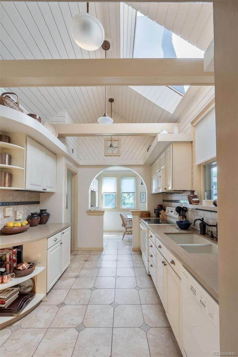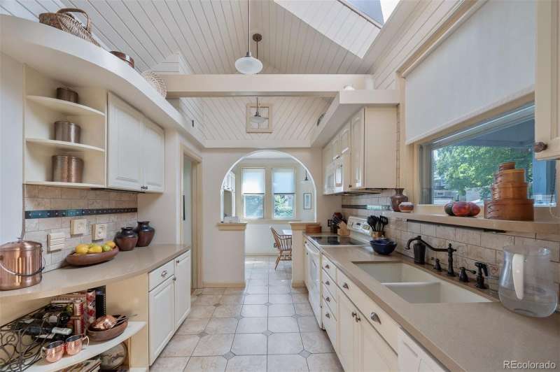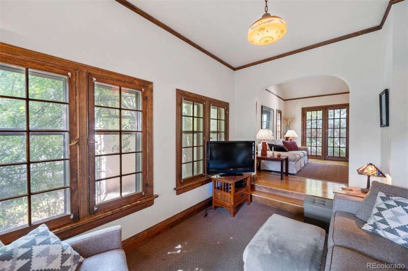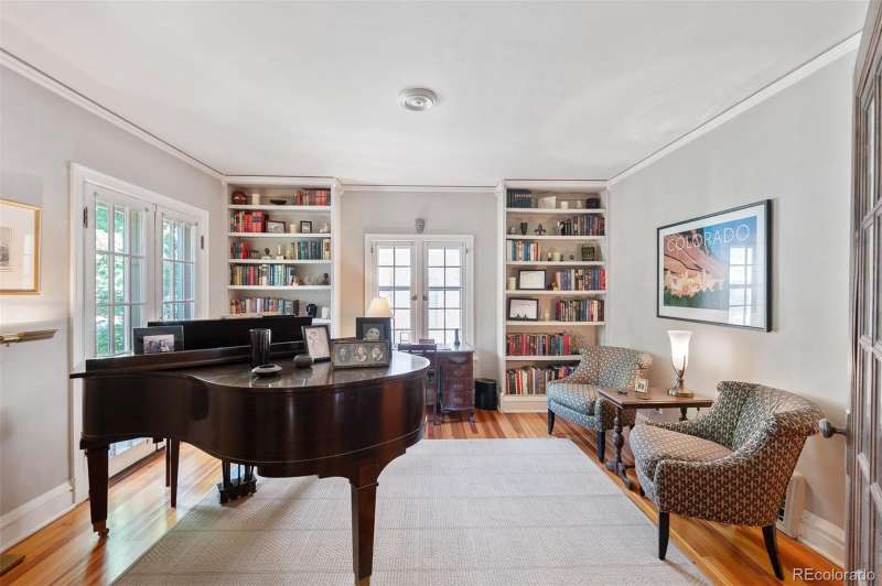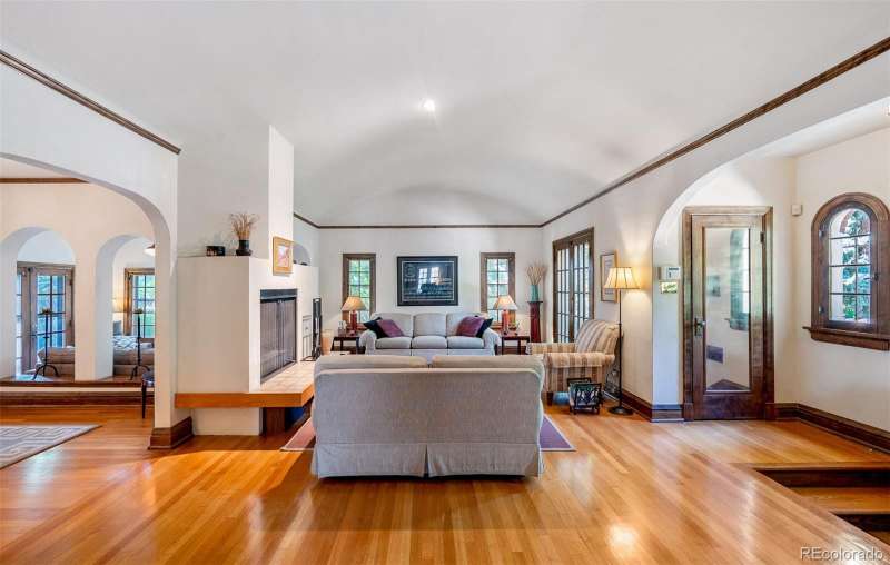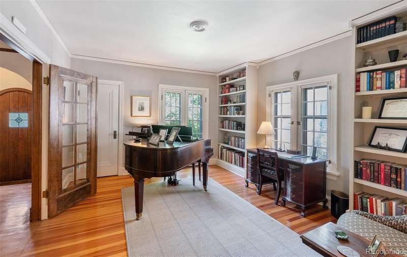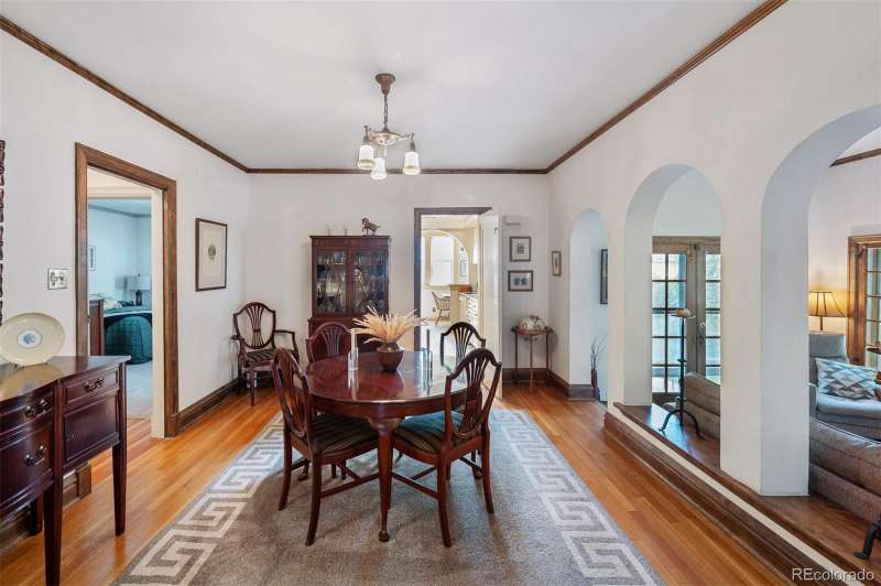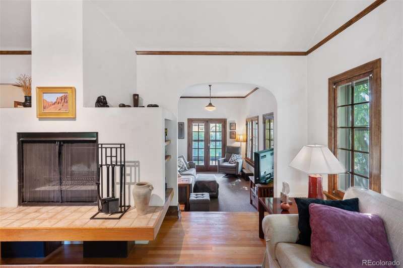 An absolute jewel box Tudor on beautiful Park Hill block. So much character and charm and pride of ownership. Lovingly curated for 30 years. This floorplan radiates from a center dining room. Elevated ceilings in the living room form a barrel ceiling over the prominent fireplace. The charm and character are evident in the piano room/bedroom with french doors and bookcases. A rare and cozy family room with original light fixture opens to a covered flagstone patio The floorplan continues to surprise with 12 foot ceiling in kitchen, beams with a skylight. Enjoy breakfast in east facing breakfast nook. Spacious primary bedroom and remodeled hall bath. The lower level features a garden level bedroom, 3/4 bath, office and rec room. The backyard is private with manicured hedges on 3 sides. A majestic 40 foot blue spruce in the front and semi circular sidewalk lead to entrance. The prettiest garage with parking pad -see photo of door between hedges. Around the corner on 23rd Avenue is Turtle( Ferguson) Park, Honey Hill cafe, The Cherry Tomato and Spinelli's Market. Meticulously maintained, the sewer has been scoped, HVAC serviced and roof inspected. Hardwood floors, central air , sprinkler system and all appliances including washer, dryer. The neighborhood schools offer great choices such as McAuliffe International, Denver School of the Arts Middle and Odyssey School. Floorplan in supplements. Contingent upon seller finding replacement home and lease back. OPEN HOUSE Sunday September 7 1-3. ON MARKET September 5--set showings early.