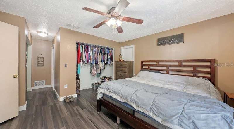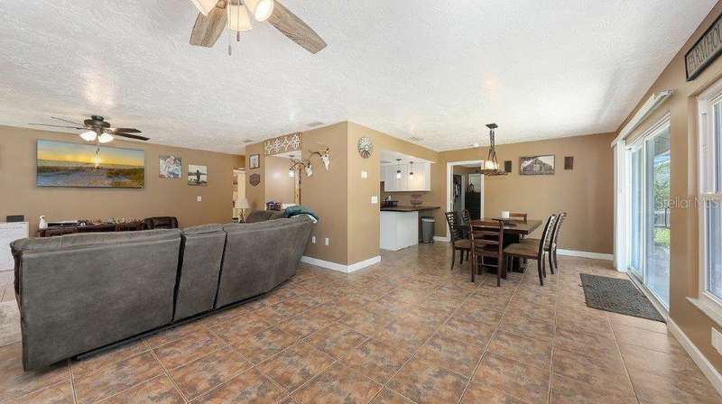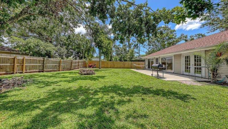 Delightful home is ready for new owners. This 3BR/2BA split plan offers tile and laminate throughout. NEW roof, new water heater, updated baths, and 4-year young stainless appliances and new kitchen cabinets and counters. French doors from primary bedroom lead to back porch. The oversized 1 car garage offers a new garage door and a semi-finished area that could be converted to a nursery or reading room with door off the primary bedroom. The back yard is fabulous with oversized concrete patio, fire pit and wood fence. Close to I-75, shopping, banking, restaurants, Home Depot and more.