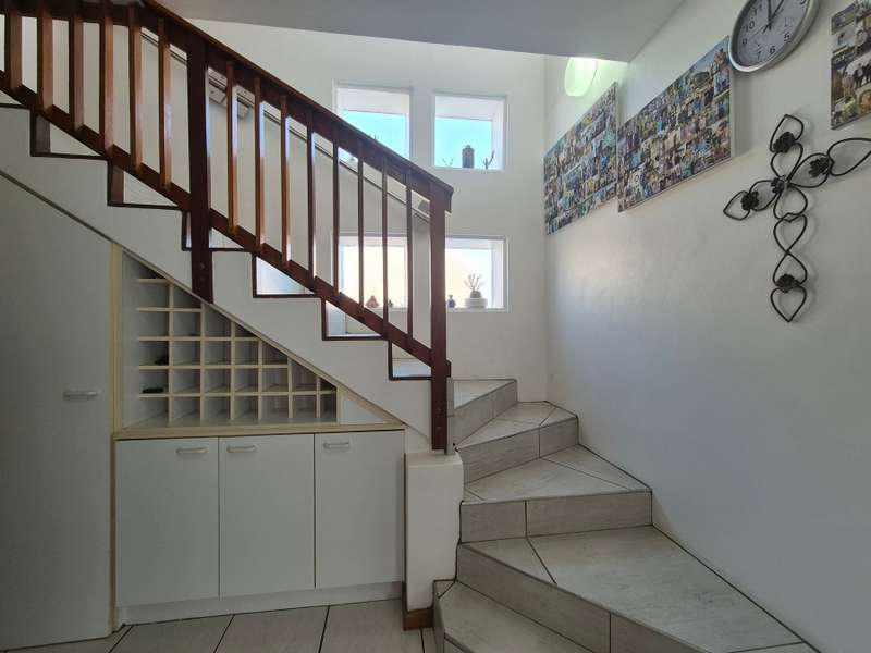 Prime Location. This double story face brick home is ideally situated close to all amenities and just minutes from the beach, offering both convenience and coastal living. PROPERTY FEATURES: Ground Floor: * Welcoming entrance hall, * Two bedrooms with built-in cupboards, * One bathroom, * Double garage with automated doors, direct access into the home, laundry fittings, and generous storage space * Private, enclosed outdoor area First Floor * Large, sunny open-plan lounge and dining area, * Modern open-plan kitchen with breakfast nook, electric hob, and under-counter oven, * Entertainment area with built-in braai, flowing to a semi-enclosed deck, * Master bedroom with built-in cupboards and en-suite bathroom Additional Features: * Extra parking for two vehicles, * Pet-friendly, With no levy and no complex rules, yet safely positioned between other homes, it offers the security and feel of a complex without the restrictions.