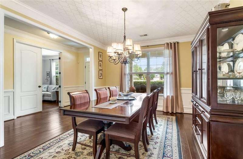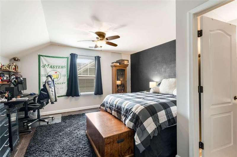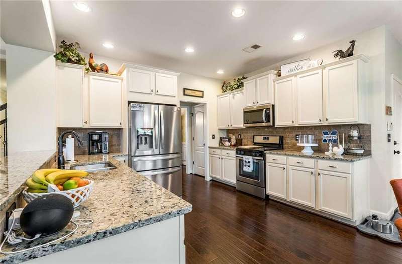 Welcome to this beautifully maintained Craftsman-style home located in a gated community just minutes from the vibrant Marietta Square. Offering 5 bedrooms and 3.5 bathrooms, this spacious residence seamlessly blends timeless style, modern updates, and functional designperfect for todays lifestyle. Gleaming hardwood floors flow throughout the main level, leading to an open-concept living space that includes a generous family room, formal dining room, den/study, and a gourmet kitchen featuring granite countertops, updated cabinetry, and stainless-steel appliancesincluding a new refrigerator, microwave, and dishwasher (2024/2025). The redesigned laundry room enhances everyday convenience with a modern, efficient layout. Upstairs, youll find newly installed hardwood flooring and carpeted stairs (2024), a large primary suite with en-suite bath, and three additional bedroomsone with a private bath, ideal for guests or multigenerational living. The third level offers a versatile bonus suite with a fifth bedroom, perfect for a home office, media room, or private retreat. Step outside to a large, fenced backyard complete with a tranquil pond and a stunning mature hardwood tree offering shade and natural beauty. The custom covered porch provides a serene space to enjoy your morning coffee or unwind in the evenings. Additional upgrades include a new roof (2022), new interior paint, updated light fixtures, and thoughtful enhancements throughout. This home offers a rare combination of privacy, elegance, and convenience in a prime location close to shopping, dining, and cultural attractions.
