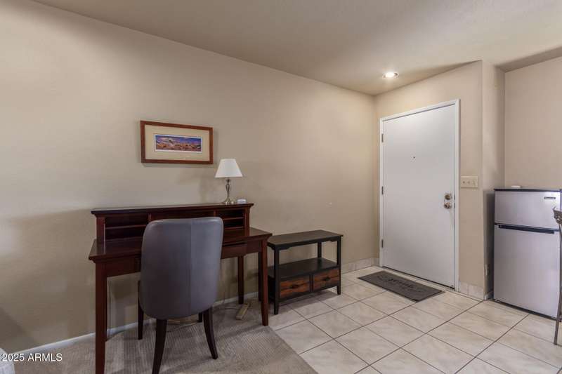 Outstanding location & price makes this home one of the best in Anasazi. Very private & quiet location with plenty of guest parking and easy exit through nearby exit gate onto Cactus. Balcony patio with laundry overlooks the pool/water feature. Easy move in-all appliances come with the home. Anasazi is adjacent to Stonecreek Golf Club, has 5 pools/spas located throughout & is located in one of the best locations in the Valley- close to loads of shopping & restaurant choices. Fwy close with ease of access to anywhere in the Valley of the Sun.