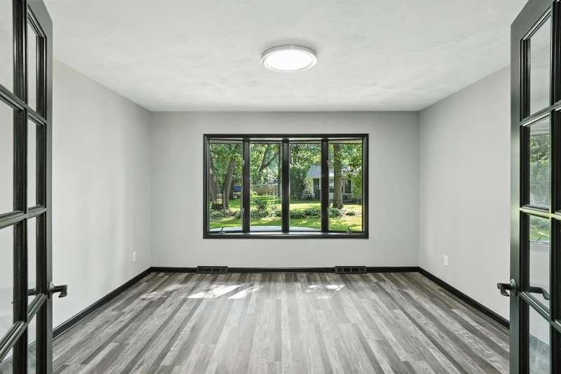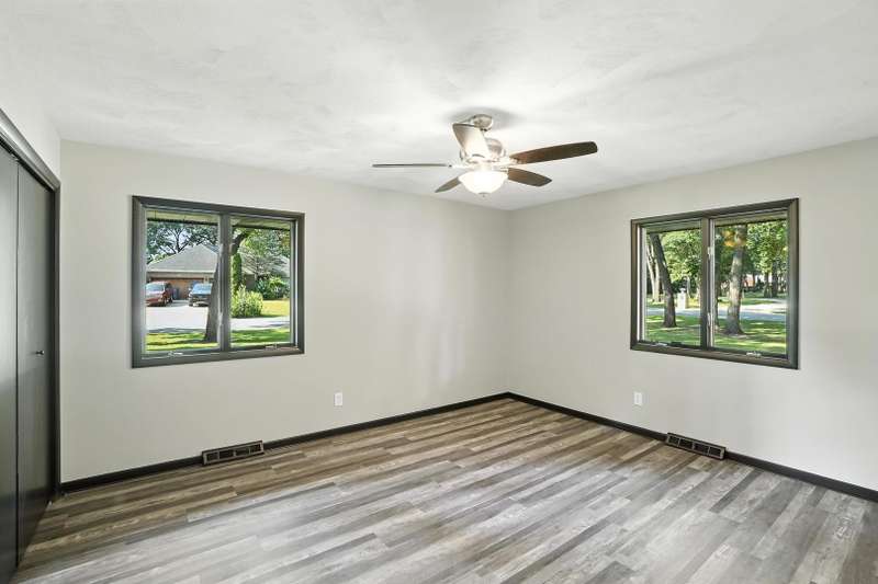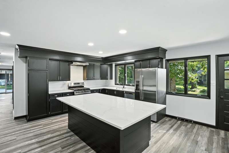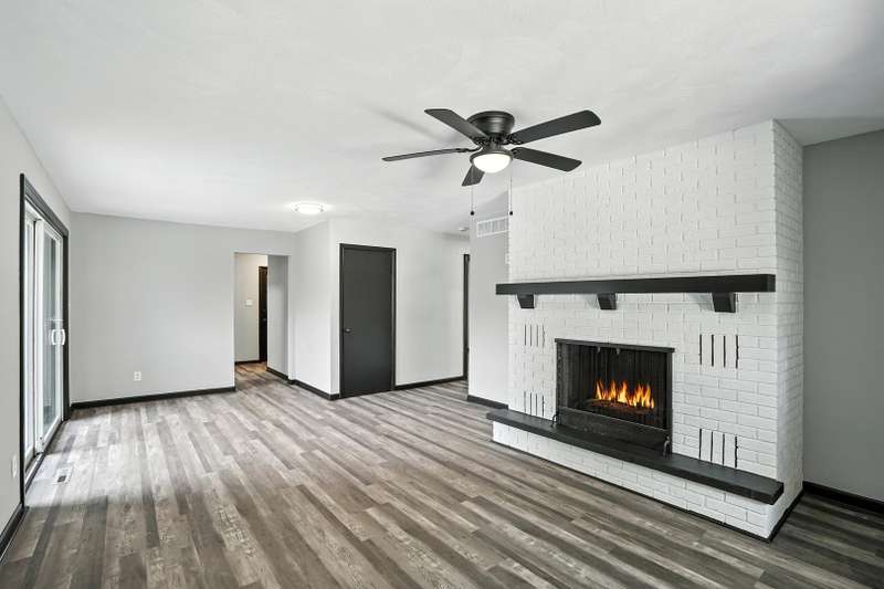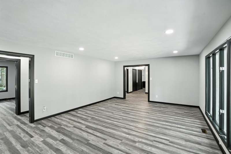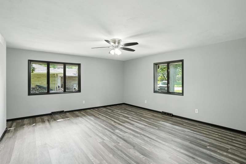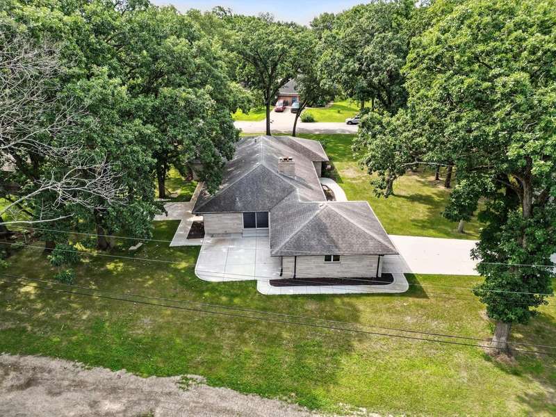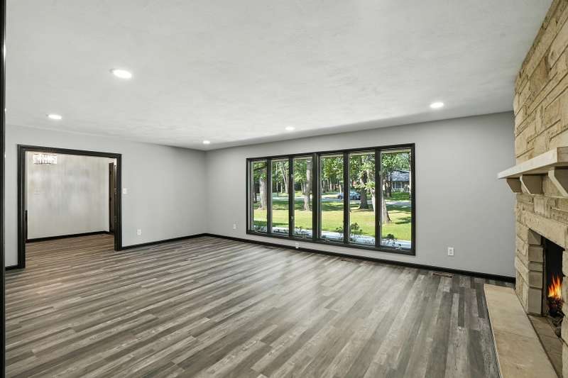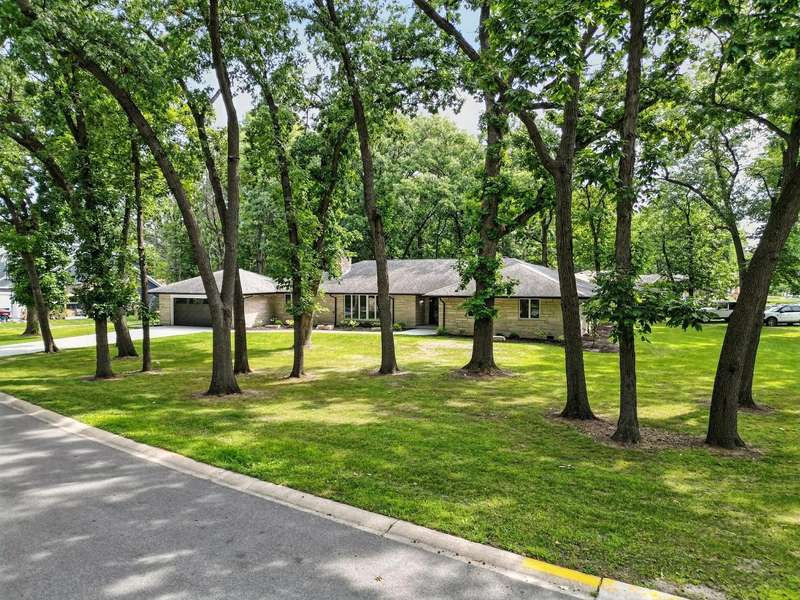 Beautifully updated limestone ranch in Dyer, Indiana, located in desirable St. John Township and Lake Central School District. A prime location for those commuting to Illinois and anyone looking to enjoy the shopping, dining, and recreational amenities Indiana has to offer. This spacious home offers over 2,300 square feet of well-designed living space on the main floor, including 4 bedrooms and multiple living areas. The standout kitchen features new quartz countertops, modern appliances, an oversized island with seating, generous storage, and a built-in mini-fridge. The primary bedroom includes an ensuite bathroom, and the flexible Den/Dining Room with double glass doors provides a perfect space for work or entertaining. You'll find both a large Living Room and a separate Family Room-each with a wood-burning fireplace and gas starter-offering warmth and character. With new LVP flooring throughout, large windows, and all of these updates, this home will be easy to move in and start enjoying the neighborhood. Enjoy the outdoors with two expansive patios and a large yard situated on a corner lot with mature trees. The finished 2-car garage includes a new door and an epoxy floor, and the basement with painted floors adds valuable extra space. This home combines comfort, functionality, and location-ready for you to move in and enjoy.