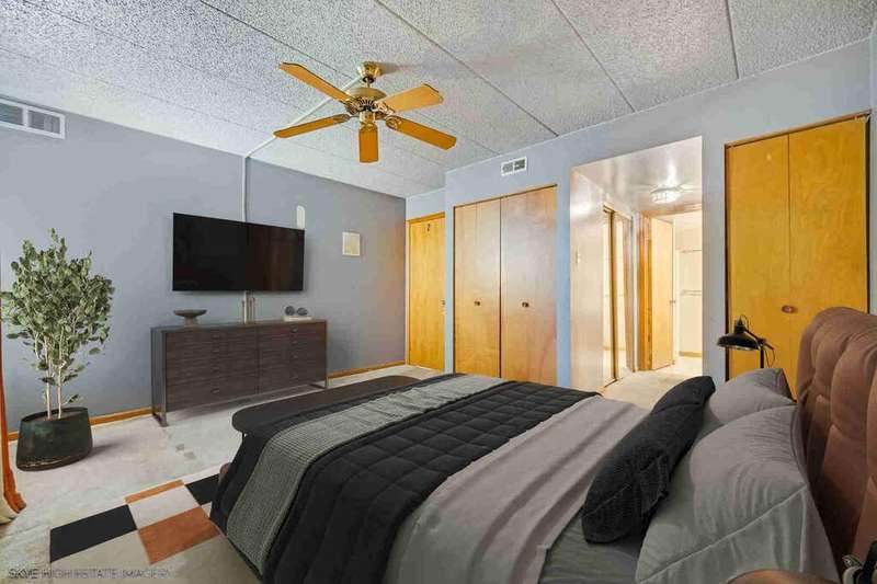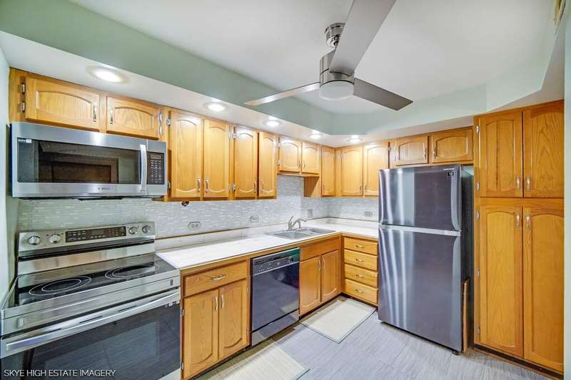 Outstanding value in this 2nd level luxurious 2 bedroom with 2 full bathroom condo. This an impressive, well maintained elevator building is 55 year old or older community. Open layout connecting living, dining and kitchen with new laminate wood flooring. Updated kitchen with newer appliances including dishwasher, garbage disposal and fridge. Balcony with sliding door of the living room. Primary bedroom has four (4) closets including walk-ins and exclusive bathroom with walk in shower. Laundry hook up for side-by-side washer and dryer in the unit (please note unit does not come with washer & dryer). Two (2) indoor heated garage parking spaces. Easy access to nearby shopping, recreation, dining and quick access to the expressway. *CASH ONLY*