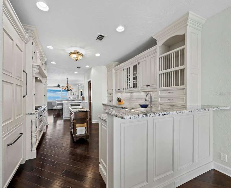 One or more photo(s) has been virtually staged. Welcome to Tangerine Bay Club, the southernmost condominium on Longboat Key, where refined sophistication meets resort-style living. This exceptional direct Bayfront end residence offers panoramic views of Sarasota Bay and the feel of a single-family home. Move-in ready with a new roof, the home has been extensively updated by the previous owner, featuring elegant granite countertops in the kitchen and baths. The spacious chef’s kitchen is a standout, complete with a center island, abundant custom cabinetry with built-in spice racks, a striking range hood, and top-tier Thermador appliances, including a 6-burner natural gas cooktop. A large breakfast room just off the kitchen adds casual dining flexibility. The open living and dining areas are ideal for entertaining and include impact-rated windows and sliders, gas fireplace, and gas hookups for both a grill and water heater. Three generously sized bedrooms each feature full ensuite baths. The primary suite impresses with Bay views, private lanai access, and a 7’x10’ custom walk-in closet. The ensuite bath includes a Jacuzzi tub and large multi-head shower. The third bedroom doubles as a den, also with a walk-in closet. Design highlights include 8-ft. mahogany doors, arched doorways, high ceilings, Hunter Douglas blinds, plantation shutters, and a well-appointed laundry room. An oversized 2-car garage provides ample storage. Community amenities at Tangerine Bay Club are unmatched: a 25-meter heated pool, kayak storage, fitness center, tennis and pickleball courts, day dock, fishing pier, and on-site management. Residents also have the option to join the Bay Isles Beach Club for just $500 per year. Located in the heart of South Longboat Key, this gated community is just minutes from the upscale shops and restaurants of St. Armands Circle, as well as downtown Sarasota’s vibrant arts scene and white sand beaches. Being offered fully furnished. Please note: patio photo is virtually staged; no patio furniture is included. Tangerine Bay Club is renowned for its Mediterranean-inspired architecture, lush 10-acre tropical setting, and active social atmosphere. A truly unique coastal lifestyle.