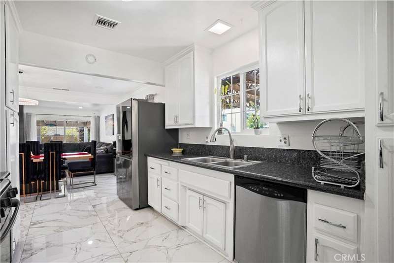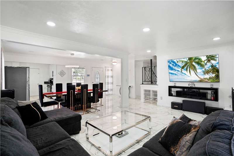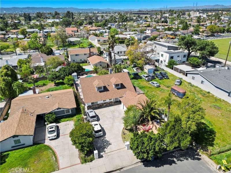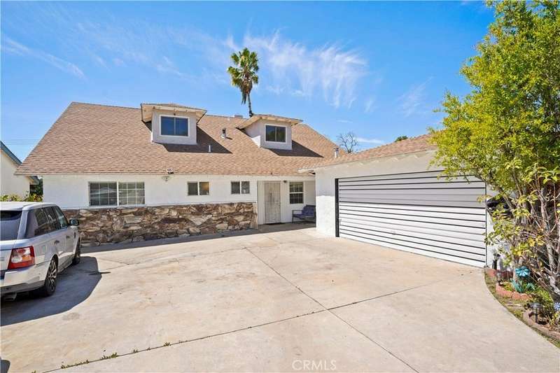Welcome to this immaculate two-story home, nestled in one of Sun Valley's most sought-after neighborhoods. The property boasts impressive curb appeal with wrought iron and block pillar fencing, lush landscaping, tall palm trees, and a charming paver courtyard. Inside to discover a spacious and flowing 1,961 square foot floor plan, designed for both comfort and style. The home is in "Move-In Condition" with elegant crown molding, a newer paint scheme, and a tasteful combination of laminate and tile flooring throughout. The bright and airy living room features recessed lighting, a custom-tiled fireplace with a raised hearth, and natural light streaming through the sliding glass patio doors. The gourmet kitchen is a chef’s dream, offering ample cabinet space, granite countertops with a beautiful backsplash, a dual-basin stainless steel sink, and built-in stainless-steel appliances. The adjacent dining area, with direct access to the patio, is perfect for family meals or entertaining guests. This home features 4 spacious bedrooms, including two grand suites. The large downstairs suite includes a lighted ceiling fan, two mirrored closets, a cozy sitting area, and direct access to the backyard patio. The second-floor suite is equally inviting, with a lighted ceiling fan and a private, well-appointed bathroom. The home also offers one secondary bedroom with its own bathroom, making a total of 3 bathrooms in the home. Energy-efficient dual-pane windows help maintain a quiet, peaceful atmosphere while keeping utility costs low. Central air and heat ensure year-round comfort. Step outside to the expansive backyard, perfect for entertaining with a gigantic, covered patio and a sparkling, fenced pool. A large storage shed is available for all your supplies, making it a functional space as well as a beautiful one. Parking is a breeze with an oversized concrete driveway and a 2-car direct-access garage, all secured behind a rolling security gate. This gorgeous home sits on an 8,552 square foot lot and is conveniently located near top-rated schools and the 5 Freeway, offering the perfect blend of comfort, style, and convenience. Don’t miss the opportunity to make this stunning home yours!