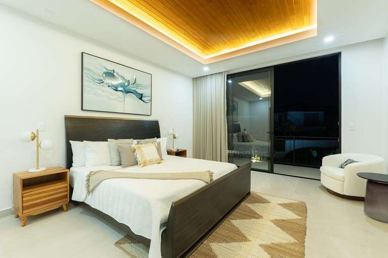 Bosques de Pinilla is a premier residential community inside the 4,500-acre gated Hacienda Pinilla, just minutes from Playa Tamarindo. Model B is a two-story villa designed for luxury living with an open floor plan, high ceilings, and large glass sliding doors that seamlessly connect indoor and outdoor spaces. The first level features a spacious bedroom with an en-suite bathroom and walk-in closet, a guest bathroom, a laundry room, and an oversized storage cellar. The second floor includes a TV room and three additional bedrooms, each with its own private bathroom and outdoor balcony. The community offers resort-style amenities, including a 70-ft lap pool, fitness and yoga center, and BBQ area, providing residents with an unmatched lifestyle in Costa Rica.