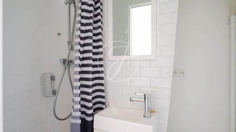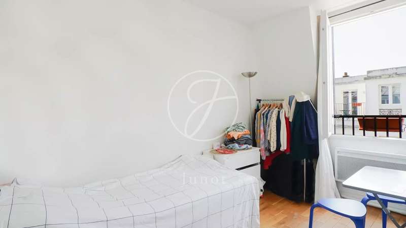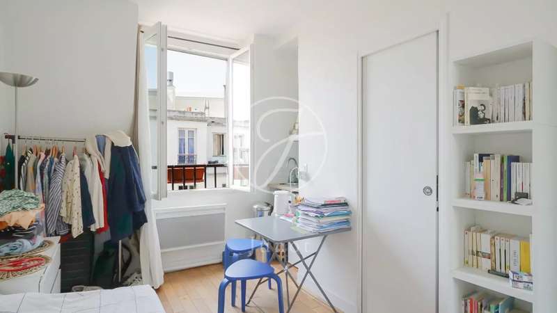 Ideally located, this charming studio of 11.59sqm Carrez law and 12.01sqm floor space, with an optimized layout, is located on the sixth and top floor of a beautiful old building, accessible by stairs. Completely renovated, it consists of a bright living room opening onto a fully equipped kitchen area, and a sleeping area. The studio, perfectly quiet, also has a shower room and a macerator-type toilet. This property will seduce with its sought-after location, its layout without wasting space, its charm, its calm and its beautiful luminosity.