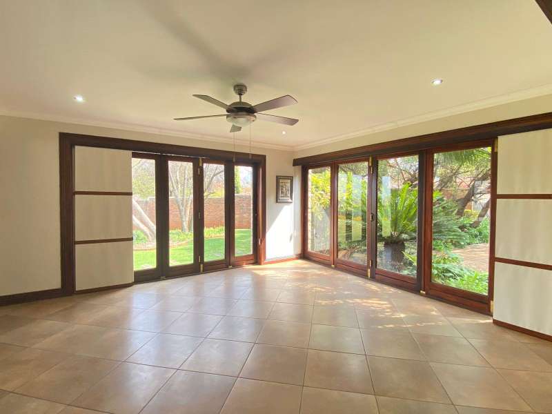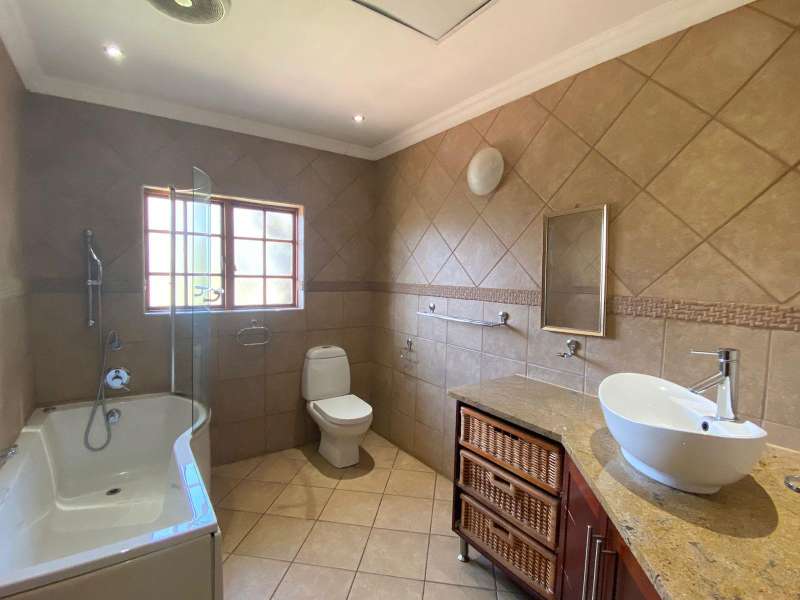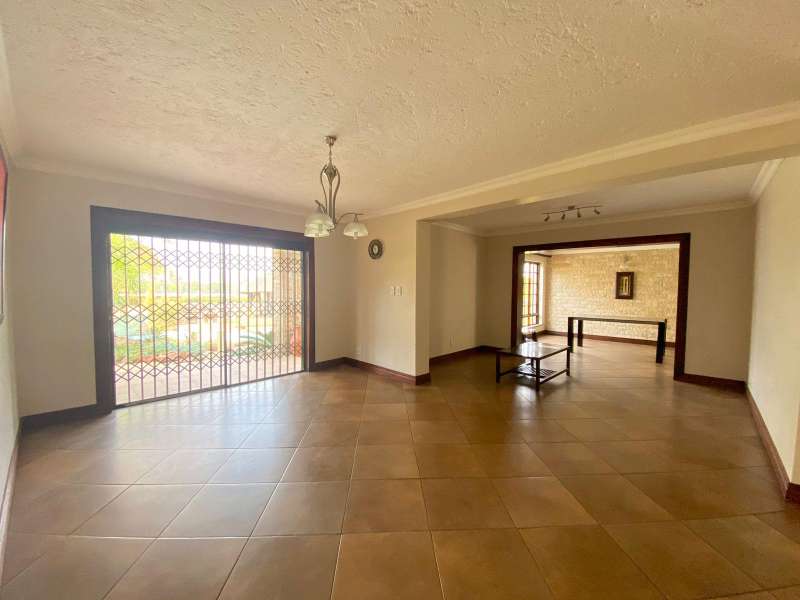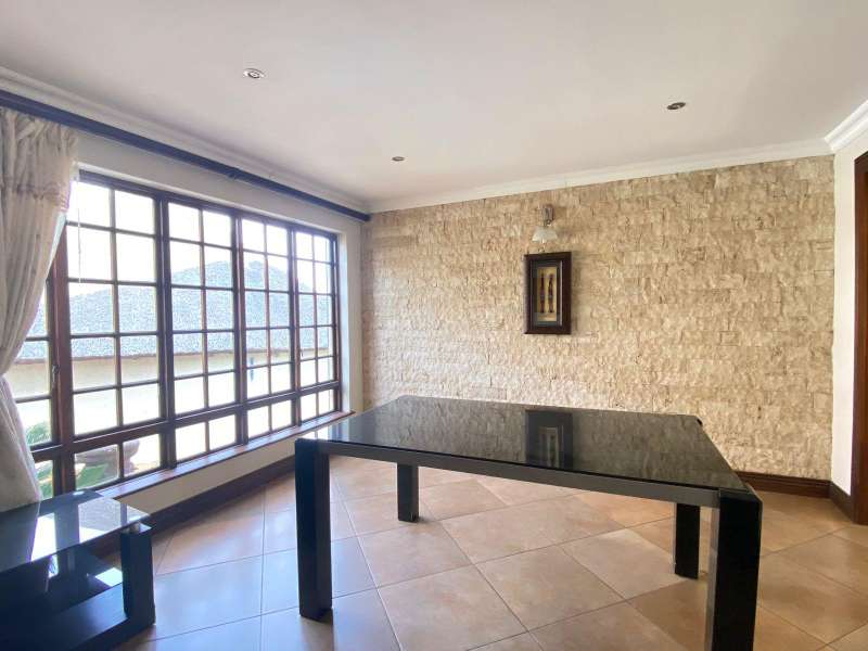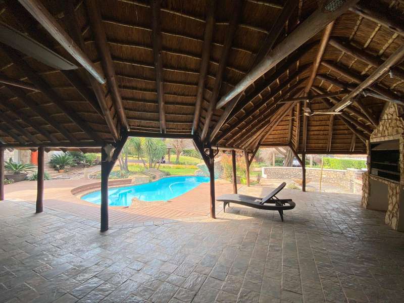 Experience the epitome of opulence with this luxurious real estate offering nestled within an expansive acre of meticulously landscaped park-like gardens. This timeless double-storey residence presents an exceptional array of living spaces designed to provide unparalleled comfort and accommodation. Upon entering, you'll be greeted by reception areas that flow into the entertainer's haven ?Çô a Lapa equipped with barbecue and pub facilities, perfectly positioned to oversee the glistening pool and cozy boma area. The property's lush vegetation is sustained by a robust borehole seamlessly integrated into the irrigation system. The heart of the home boasts a gourmet kitchen, complete with a generously sized center island, with spacious scullery and laundry zones. Ascending the grand staircase, you'll find a pajama lounge and a study area. With a total of four generously proportioned bedrooms, each adorned with built-in closets, and three meticulously designed bathrooms (two of which are en-suite. The main bedroom further indulges with a walk-in closet and a secure walk-in safe. Security is paramount, as evidenced by the comprehensive alarm system, external beams, and surveillance provided by state-of-the-art CCTV cameras. For added convenience, the property encompasses separate quarters for domestic help, featuring its own kitchen and bathroom. Parking options abound, with a double garage, carport, and ample extra space to accommodate vehicles. A versatile Wendy house caters to storage needs, keeping the property uncluttered and organized. Schedule your private viewing to immerse yourself in the grandeur of this remarkable property. Please note that viewings are available by appointment only.