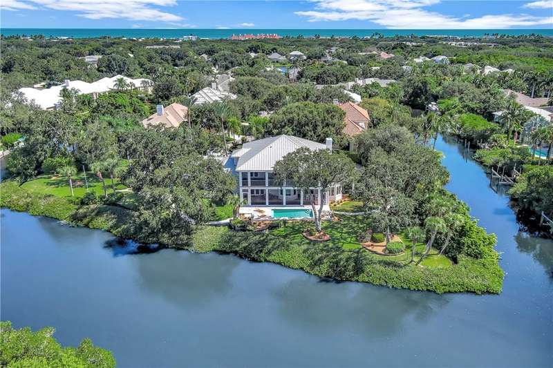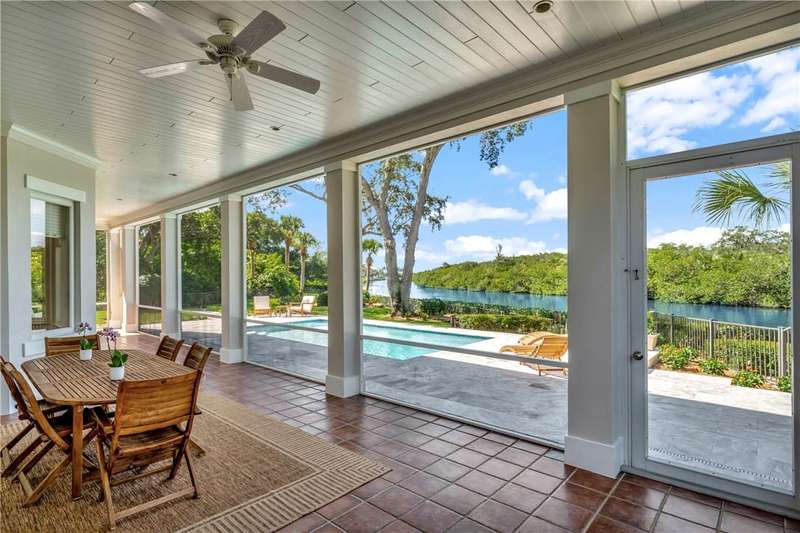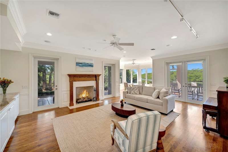 Encompassing a full waterfront peninsula in the highly desired Estuary, with 5921 SqFt luxury living and 541ft of waterfront on .89 acres. This estate offers utmost privacy. New heated/cooled saltwater pool, new roof and new kitchen in 2025. Captivating views of Bee Gum Point Preserve. Three large screened porches, elevator, primary suite with two oversized walk-in closet rooms. Three additional ensuite bedrooms. Spacious air-conditioned 2 bay garages on each end of the home. Fenced area for pets, endless peaceful nature views, amazing privacy, 30ft private dock. . Sizes approx/subj to error.
