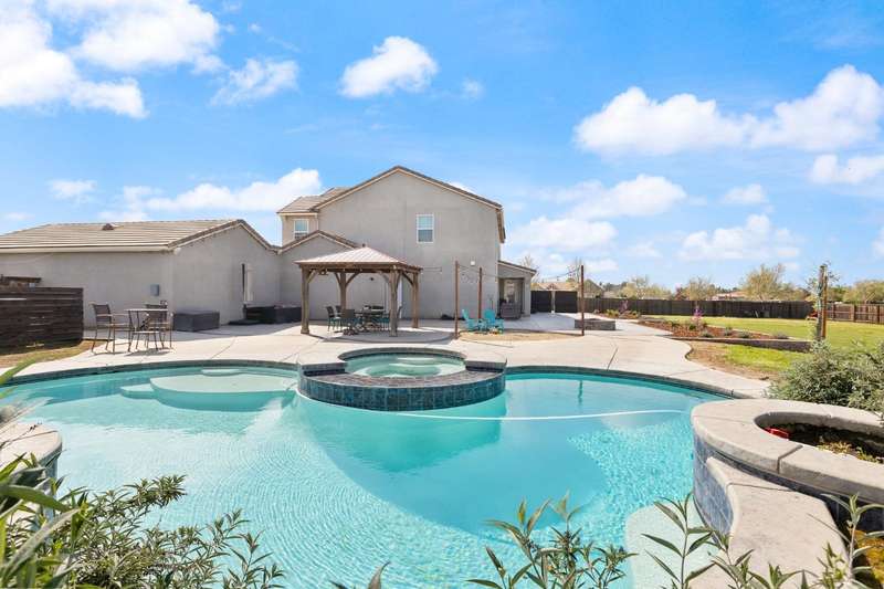 Price just reduced! Fall in love with this stunning home in Red Hawk Estates. This spacious 6-bedroom residence sits on 2 acres and is perfect for entertaining. A grand circle driveway and beautifully manicured yard welcome you upon arrival. Inside, the main house features upgraded luxury vinyl flooring, designer paint, and an open-concept layout ideal for modern living.Upstairs, you'll find four generously sized bedrooms, including a luxurious primary suite with an oversized bathroom and walk-in closet. A fifth bedroom downstairs is perfect for guests or a playroom. The attached casita features a private entrance, living room with kitchenette, bedroom, and full bathideal for visitors or multigenerational living.Enjoy resort-style living in the backyard retreat with a sparkling pool and spa. An expansive 4-car garage offers plenty of storage, and OWNED solar boosts energy efficiency.This home has already undergone inspections and includes a septic certificationreports are available and ready for review. Previously under contract with contingent buyers, it's now ready to welcome its next homeowner.