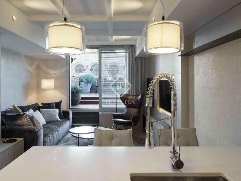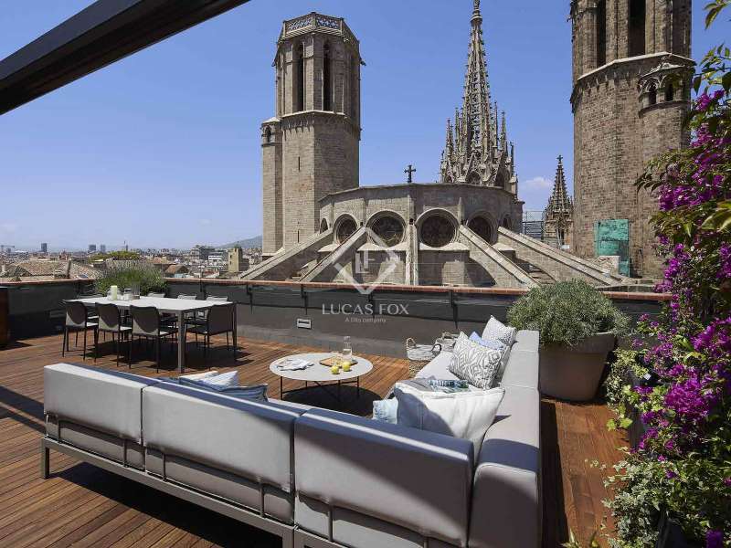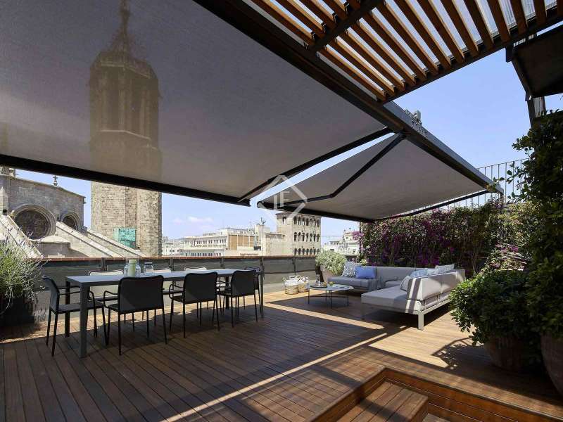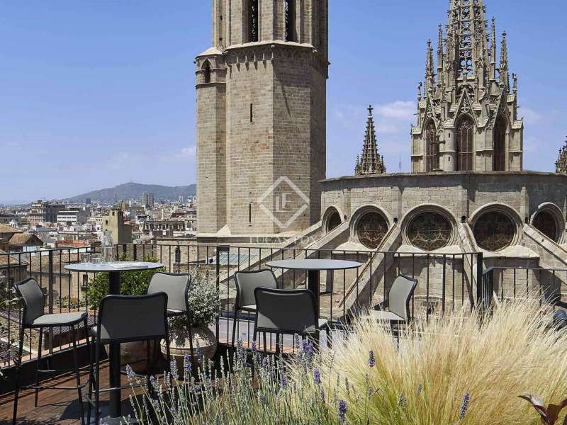 Nestled within the historic charm of Barcelona’s Gothic Quarter, this one-of-a-kind luxury penthouse offers an unparalleled living experience in one of the city’s most sought-after neighbourhoods. Situated in an elegant and a modern building equipped with a lift, this exclusive residence seamlessly blends contemporary comfort with timeless urban allure. Spanning 73 m² of refined interior space, the apartment features two serene bedrooms and two sleek bathrooms, each finished to the highest standards. The home is fully furnished with bespoke pieces, curated to enhance the modern yet cosy ambiance throughout. What truly sets this property apart are its three magnificent private terraces, totalling a spectacular 184 m² of outdoor living space. These open-air sanctuaries provide the perfect setting for al fresco dining, relaxing under the stars, or simply soaking in panoramic views of the city’s skyline, a rare luxury in the heart of Barcelona. The bright and stylish open-plan living and dining area flows effortlessly into a fully equipped designer kitchen, ideal for entertaining or enjoying peaceful evenings at home. Every corner of this penthouse has been thoughtfully designed for comfort, sophistication, and elevated urban living. Whether as a luxurious city retreat, a prestigious investment, or a full-time residence, this exceptional penthouse is a truly unique option in Barcelona’s historic centre. Properties of this calibre, with such generous outdoor space in this iconic location, are exceedingly rare. Please contact us for further information.