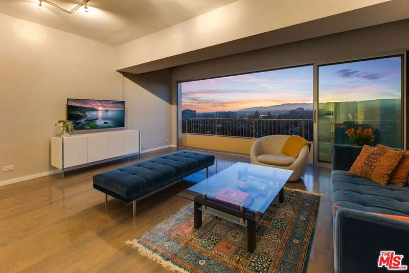 Perched high above the city in the prestigious Wilshire Regent, this exquisitely reimagined two-bedroom, two-bath residence offers sweeping northern vistas of Little Holmby and Bel Air from every room. Soaring ceilings elevate the sense of space, while the open-concept kitchen stuns with custom cabinetry, and Bosch appliances. The living room features new floor to ceiling sliding glass doors opening to a balcony with majestic views. Perfect for entertaining, the living space includes a bar and wine refrigerator. The primary suite boasts dual walk-in closets, providing ample storage, and a beautiful primary bath. The well appointed secondary bedroom contains built-in storage, a large closet, and a dedicated bath. Residents enjoy access to an impressive suite of amenities including 24/7 concierge, valet parking, pool, sun deck, state-of-the-art fitness center, banquet and conference rooms, and more. ALL UTILITIES ARE INCLUDED IN THE HOA (Electric, Water, Trash, Cable, Wi-fi).