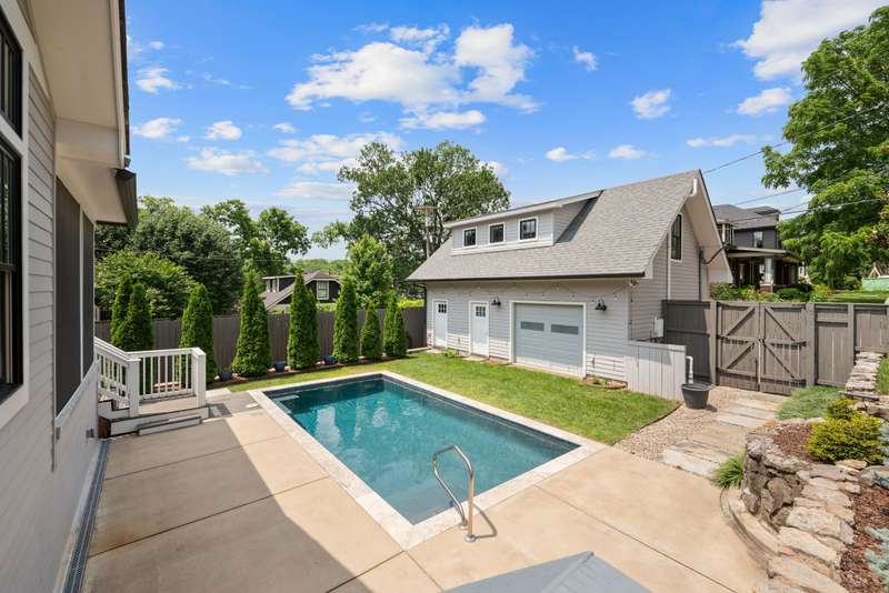 Step into timeless charm and modern luxury with this beautifully renovated historic bungalow on one of Nashville's most coveted streets and neighborhoods | Full renovation done in 2020 | Designed by Nine12 Architects | Blending classic architecture with high-end contemporary finishes | The main residence showcases light-filled interiors, original character, and thoughtful design ideal for everyday living and elegant entertaining |The chef's kitchen opens seamlessly to elegant living areas ideal for entertaining, while the serene primary suite offers a spa-inspired retreat | Additional upgrades made in 2023 include interior construction, painting, hardwoods, lighting, electrical, and crawlspace upgrades | Outside, enjoy your own private oasis featuring the large covered patio, a 12x24 saltwater pool with a new privacy fence installed in 2023 and professionally landscaped yard by Gardens of Babylon | Half bath for pool at garage | A rare bonus with the fully equipped 664 sq ft DADU above the detached two-car garage perfect for guests, extended family or luxe rental potential | A few features to mention include plantation shutters, covered front porch with a porch swing, large covered back patio, new grill 2023, backup generator, tankless hot water heater, newer HVAC (2020), full irrigation system, and sump pump installed 2023, new dehumidifier 2024 | Rooftop deck on back of main house | Basement has a great area for a workshop | This home offers the perfect blend of history, functionality, and Southern charm | Walkable with sidewalks | Just minutes from Nashville's finest dining, culture, and entertainment