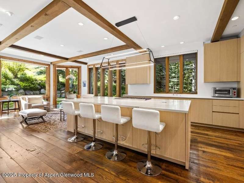 This spacious ski-in, ski-out single-family home offers the ultimate in mountain living, with stunning views of Tiehack / Buttermilk Mountain right in your backyard. Boasting five spacious bedrooms with en-suite bathrooms, each designed for comfort and privacy, this home is perfect for family gatherings or hosting guests. In addition, there are 2 convenient half bathrooms for added ease and convenience. The open concept living areas are filled with natural light, showcasing the breathtaking mountain scenery. A newly designed gourmet kitchen with high-end appliances flows seamlessly into the dining and living rooms, ideal for entertaining or cozy nights in front of the fireplace. Ski enthusiasts and hikers alike will love the direct access to the Tiehack side of Buttermilk Mountain, making it easy to hit the slopes and trails right from your doorstep. Whether you're enjoying the winter and summer sports or taking in the year-round beauty of the surrounding landscape, this home offers the perfect balance of relaxation, luxury, and adventure. Located in the Maroon Creek subdivision with quick and easy access to Aspen's world-class amenities and walking distance to the Aspen public schools, this rare find is a must see.