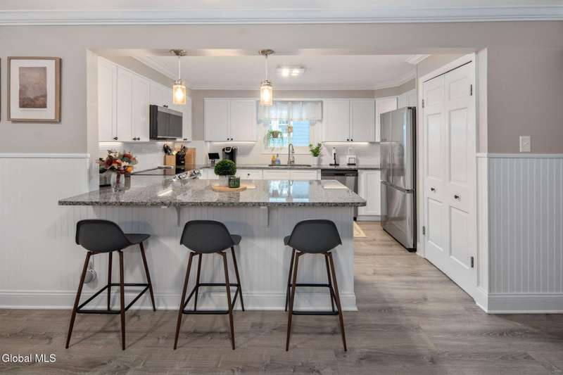 Welcome to this beautifully updated 3-bedroom, 2-full bath home thoughtfully designed with today's buyer in mind. From the moment you step inside, you'll notice the meticulous interior showcasing fresh new carpeting, a modern kitchen, and tastefully updated bathrooms that make this home truly move-in ready. The open and inviting layout flows seamlessly, creating comfortable spaces for both everyday living and entertaining. The semi finished basement offers additional flexible space-perfect for a home office, gym, or recreation room-while the backyard serves as a private retreat with a patio ideal for gatherings or quiet evenings outdoors. Energy-efficient solar panels keep utility expenses low, adding incredible value to this already exceptional home. Offering style, functionality, and savings, this residence is ready to welcome its next owner.
