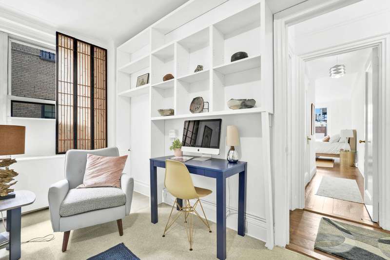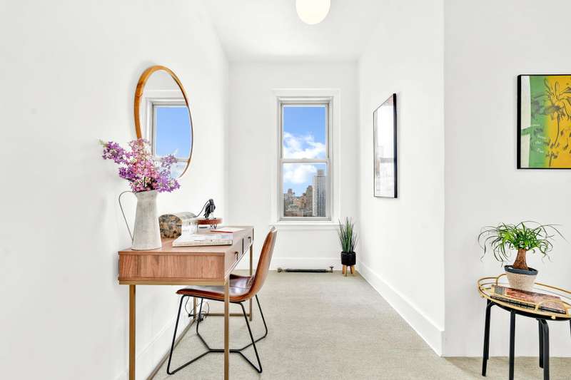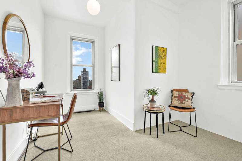 This spacious classic six residence boasts a semi-private landing, a gracious entry foyer, three exposures for abundant natural light, high ceilings, and original hardwood floors. Explore the sunlit country-style kitchen, complete with a large pantry. There's even a private staff room/home office, or can be a convertible three bedroom for your added convenience with two spacious and tranquil bedrooms, along with two windowed bathrooms. The ample wall space throughout the home provides the perfect canvas for showcasing your cherished art collection, while the original prewar details exude timeless charm.The living room and dining room have been tastefully transformed into an open, and airy entertainment space with sunlight flooding in through oversized windows, illuminating the room and offering city views. Admire charming custom built bookshelves framing the decorative fireplace.Retreat to the master bedroom, which offers double exposures, two walk-in closets, and an en-suite windowed bath featuring a soaking tub and separate shower.Indulge in majestic sunsets and revel in the vast expanse of Western open sky visible from all major rooms, offering unobstructed and protected city views.This prewar beauty eagerly awaits your personal touch, presenting a rare opportunity to own a piece of history and create your dream home.Floor plan provided, let your imagination soar!The White House is a full-service prewar cooperative, providing a host of amenities for its residents. A full-time Residence Manager/Superintendent and 24 -hour doormen ensure exceptional service and convenience. The building features experienced maintenance staff, passenger and service elevators, a beautifully appointed lobby, a fitness room, a nursery/playroom, a central laundry room, a half basketball court, a bike room, and private storage cage for each unit. Please note that there is a 2% flip tax to be paid by the buyer.Conveniently located just minutes away from Central Park, renowned museums, subways and buses, private parking garages, charming cafes, fine restaurants, neighborhood boutiques, and gourmet food markets.
