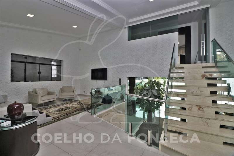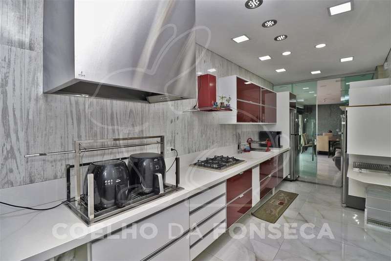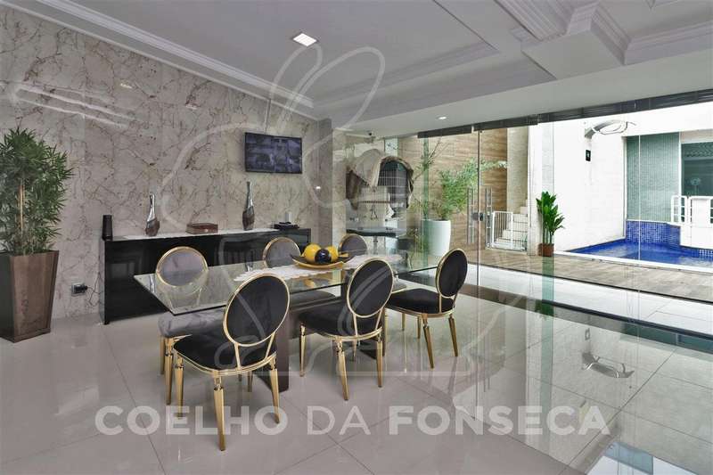 Maravilhosa residência, com três dormitórios, sendo uma suíte de extremo bom gosto, refinamento e qualidade dos acabamentos. Pisos porcelanato de qualidade, vidros temperados, cozinha americana luxuosa, adega, sala de TV, sala de estar, home theater, sala de almoço ao lado da piscina, todos compatíveis com acabamentos de luxo. Duas saunas, seca e úmida. Sala de ginastica, edícula com duas lavanderias completas. Cinco vagas de garagem.