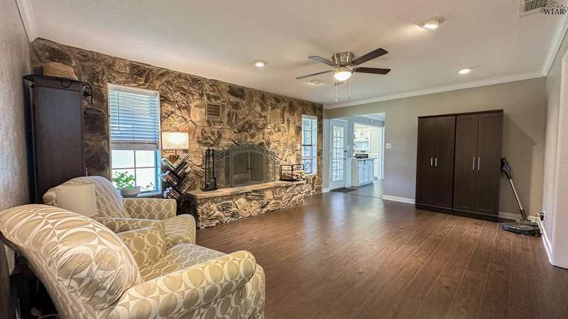 Great family home in a wonderful, quiet, secluded neighborhood, and walking distance to Hursh Park. Enjoy the floor plan that offers 2 living areas, a beautiful, large wood-burning fireplace, and a generously sized dining area. Updates and improvements to this 3/2/4 include new roof, carpet, kitchen and dining flooring, all in 2025. Other recent updates include a 2-car carport, a covered patio in the back, attic insulation, paint, and plank flooring. Large privacy-fenced backyard with room to roam.