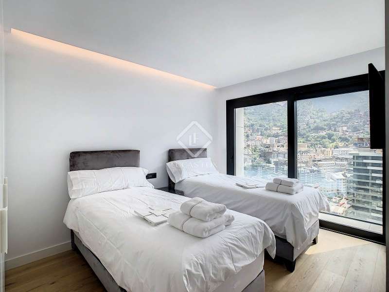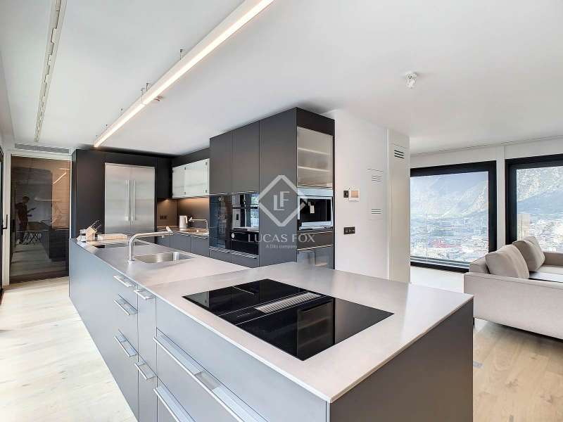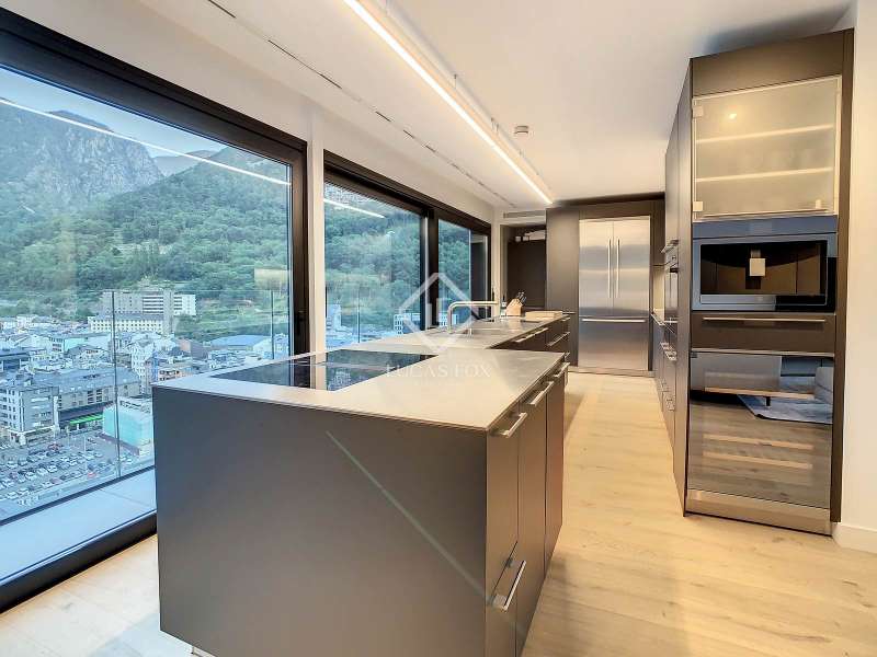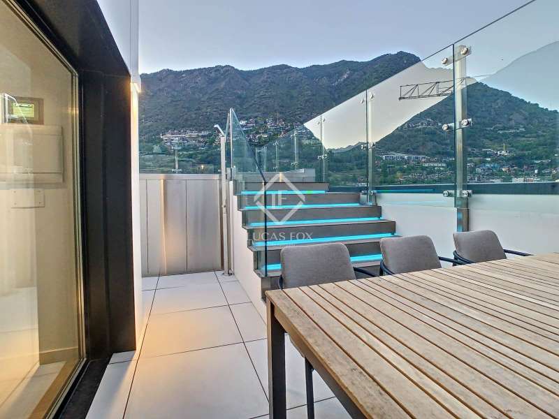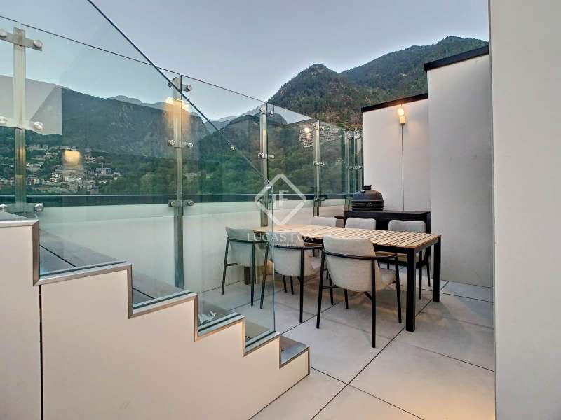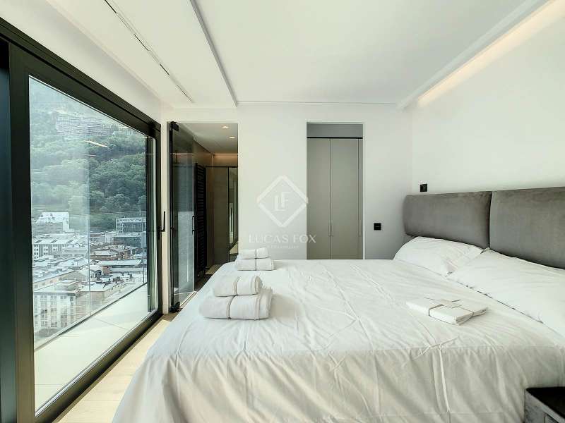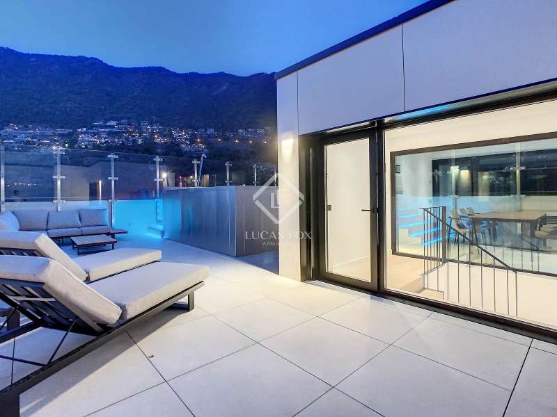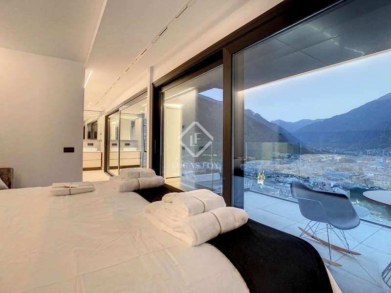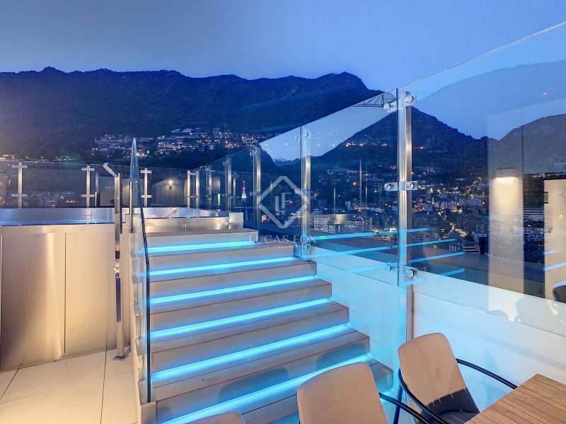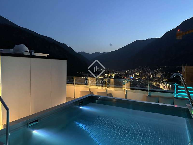 Lucas Fox presents this exclusive luxury property , currently rented, designed with high-quality finishes and unique on the market. Located on the 20th floor of a well-known new building in the centre of Escaldes, it is offered to future tenants ready to move in with the greatest comforts. It features designer furniture, large-format televisions, artwork among the decor, and a fully equipped kitchen with utensils, crockery, and glassware. The apartment is spread over three floors. The first primarily houses the night area with three double bedrooms, the second, the day area , and the third, a large terrace with panoramic views of the city. On the second floor , we find a large entrance hall with a staircase leading to the upper and lower floor . Here, we find a large living room with views of the Andorra la Vella valley and also access to a small terrace. On the other side of the floor, we find a huge kitchen with a central island and a separate utility room . The kitchen was created with great attention to detail, with high-end appliances and high-quality furniture to make it stand out on its own. Upon reaching the lower floor , we find three double bedrooms, each with its own dressing room and private bathroom. The master bedroom is the most spectacular, as both the bedroom and the dressing room have access to an incredible terrace. On the top floor, there is a 97 m² private terrace with a heated pool to delight those who want to enjoy a relaxing sunset with 360º views of the city of Andorra. The property is completed with 3 XL parking spaces and 2 storage rooms, ideal for maximizing the space in the property. Views, light, comfort, and exclusivity are the predominant features of this fantastic project, ready to be enjoyed by the most discerning client. The property is currently rented. Ideal for investors looking for immediate returns. Contact us for more information or to arrange a visit.