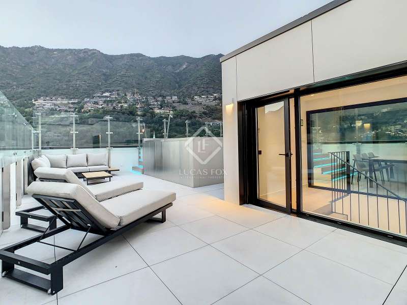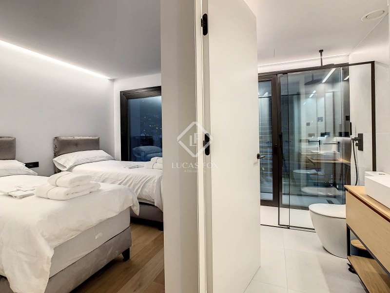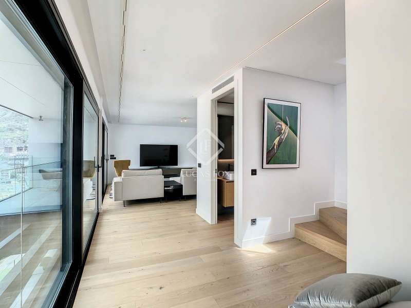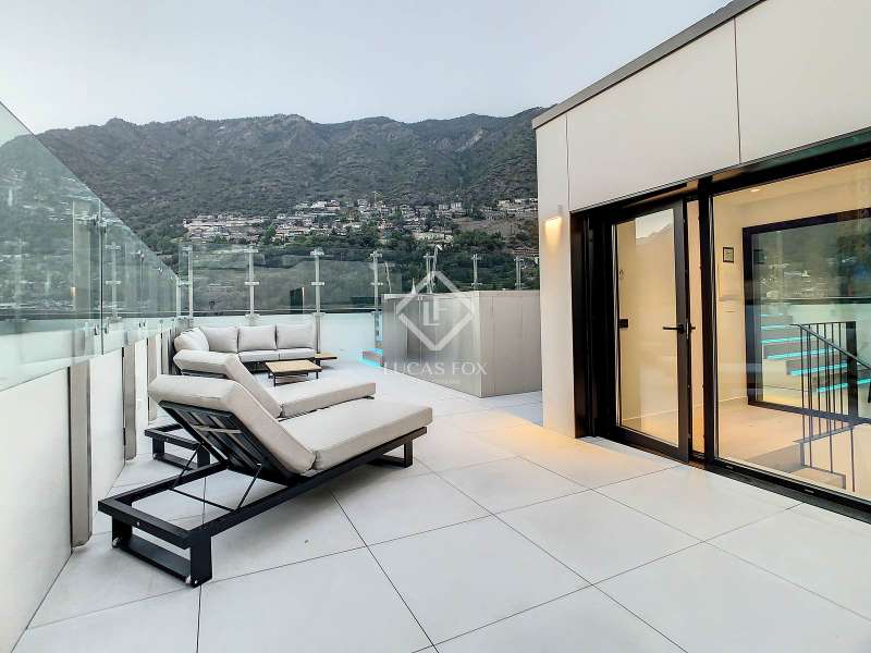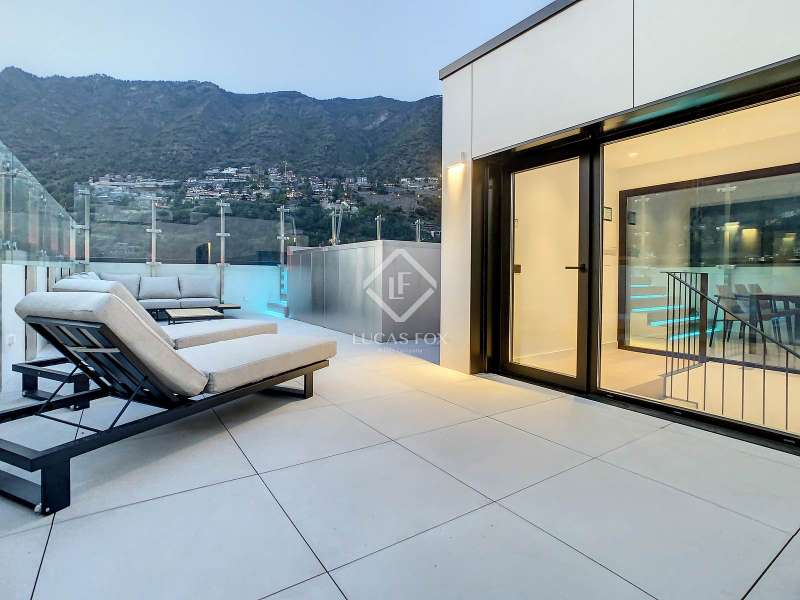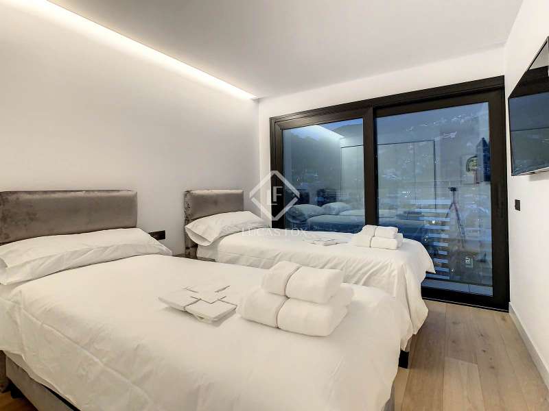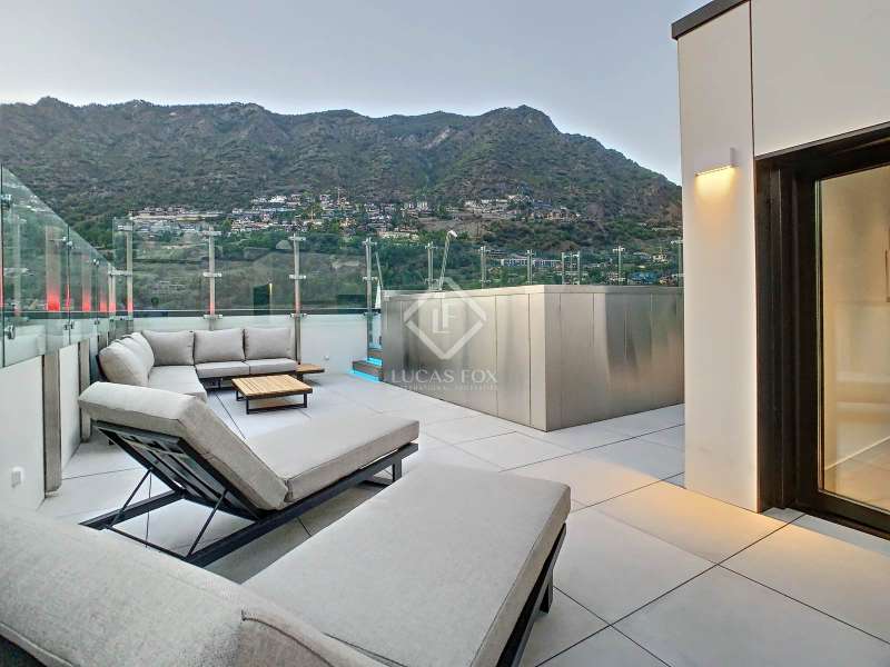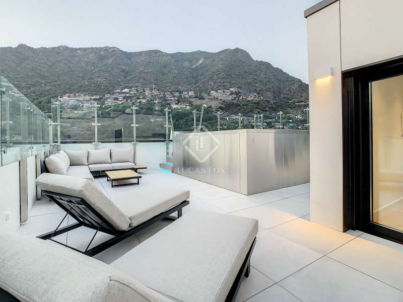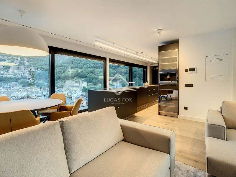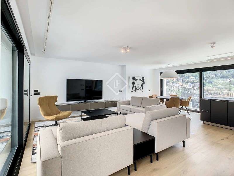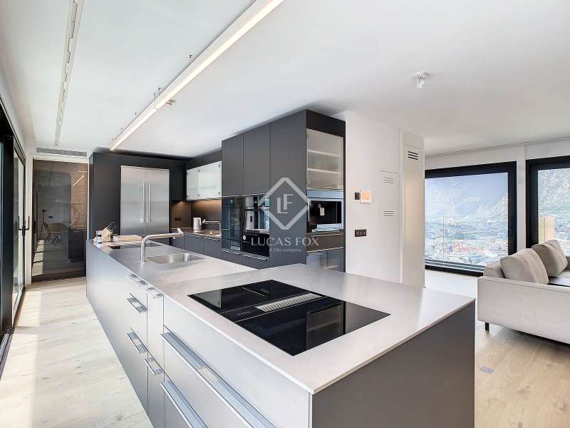 Lucas Fox presents this exclusive luxury property , currently rented, designed with high-quality finishes and unique on the market. Located on the 20th floor of a well-known new building in the centre of Escaldes, it is offered to future tenants ready to move in with the greatest comforts. It features designer furniture, large-format televisions, artwork among the decor, and a fully equipped kitchen with utensils, crockery, and glassware. The apartment is spread over three floors. The first primarily houses the night area with three double bedrooms, the second, the day area , and the third, a large terrace with panoramic views of the city. On the second floor , we find a large entrance hall with a staircase leading to the upper and lower floor . Here, we find a large living room with views of the Andorra la Vella valley and also access to a small terrace. On the other side of the floor, we find a huge kitchen with a central island and a separate utility room . The kitchen was created with great attention to detail, with high-end appliances and high-quality furniture to make it stand out on its own. Upon reaching the lower floor , we find three double bedrooms, each with its own dressing room and private bathroom. The master bedroom is the most spectacular, as both the bedroom and the dressing room have access to an incredible terrace. On the top floor, there is a 97 m² private terrace with a heated pool to delight those who want to enjoy a relaxing sunset with 360º views of the city of Andorra. The property is completed with 3 XL parking spaces and 2 storage rooms, ideal for maximizing the space in the property. Views, light, comfort, and exclusivity are the predominant features of this fantastic project, ready to be enjoyed by the most discerning client. The property is currently rented. Ideal for investors looking for immediate returns. Contact us for more information or to arrange a visit.
