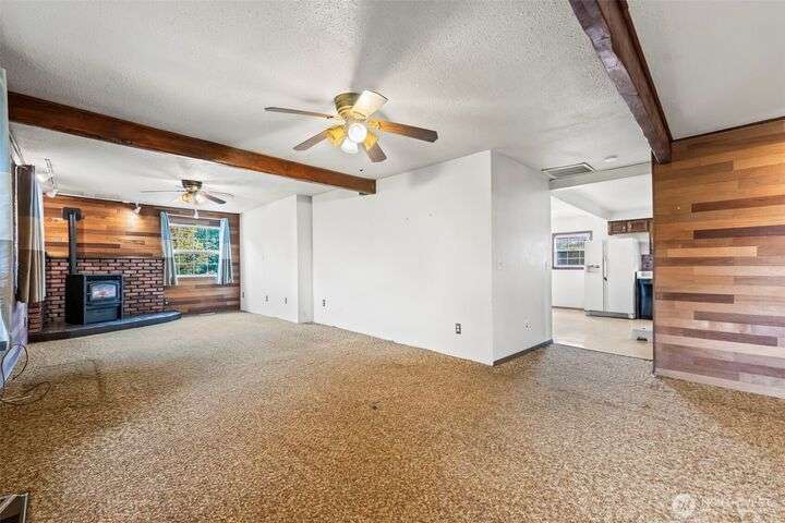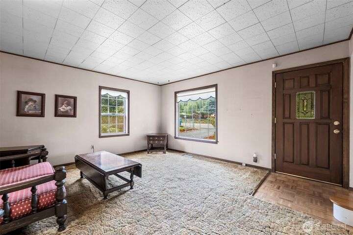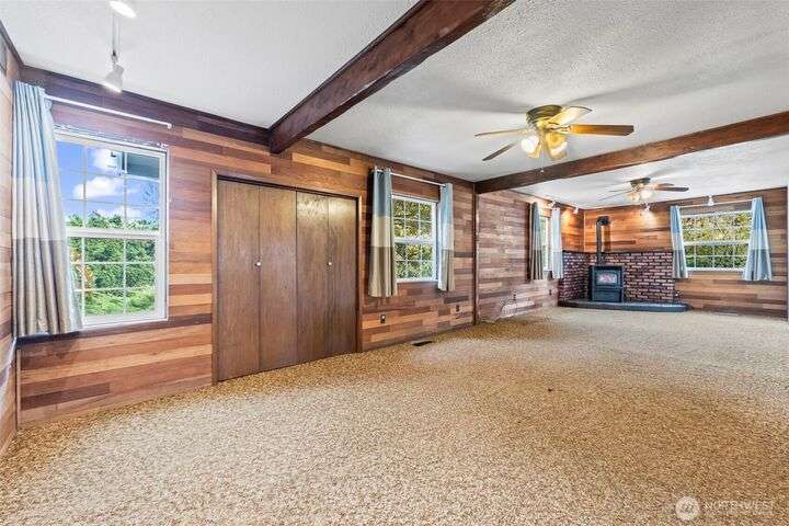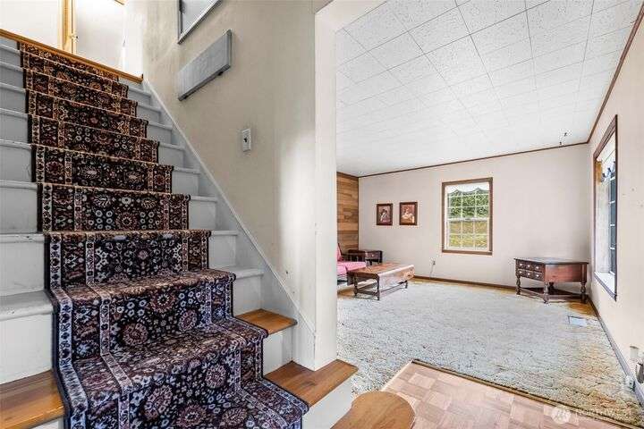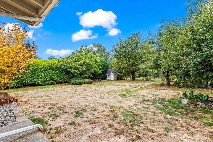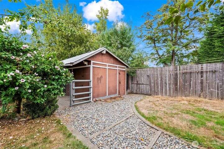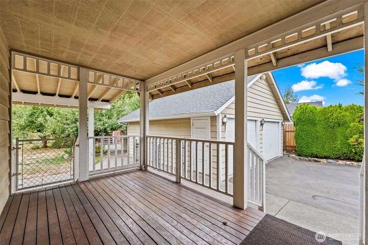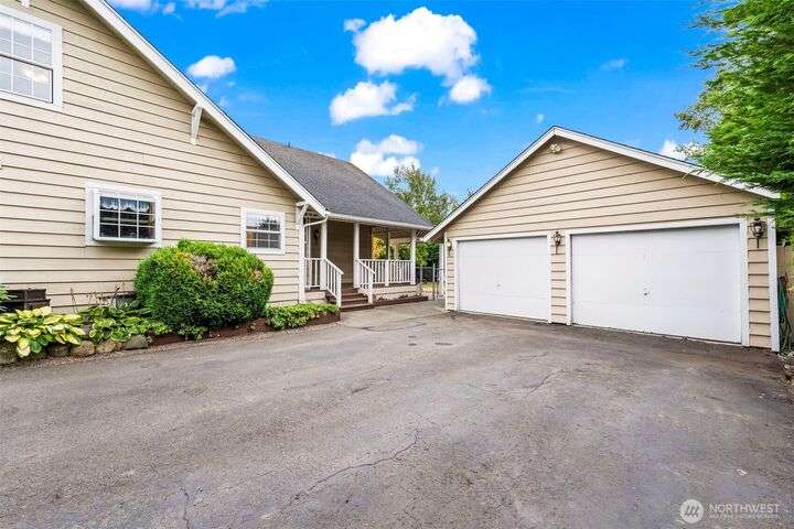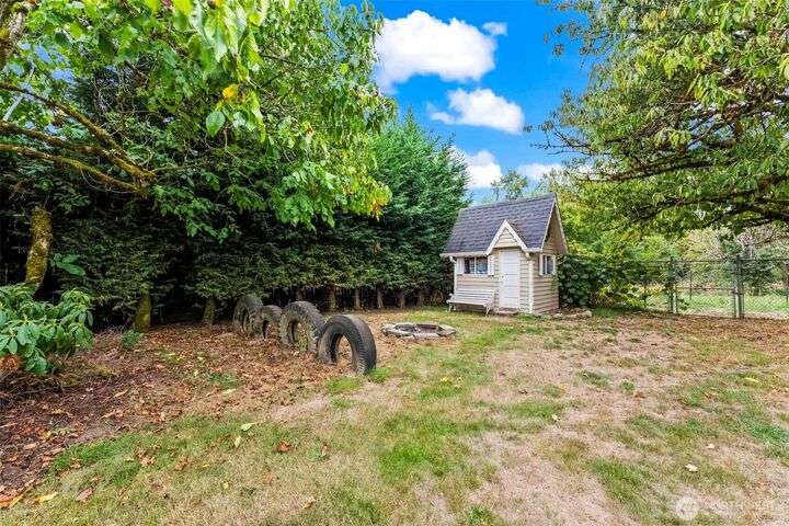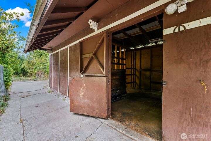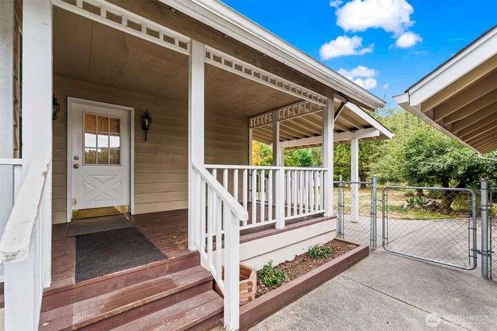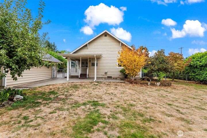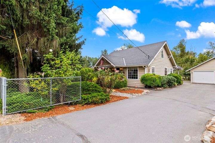Charming Craftsman styling welcomes you with a covered front porch and classic appeal. 1.15 acre property offers space to roam, plus a barn/stable with two horse stalls. Seller has enjoyed keeping horses here over the years. Beautiful enclosed property with fruit trees and mature landscaping, plus a 2-car garage with a newer roof. Stay comfortable year-round with a heat pump, updated windows, and cozy pellet stove in the expansive family room. Nice layout includes a main floor bedroom and two more upstairs. Full bath on main and ¾ bath up. So much to love about this home and land!