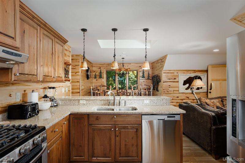 One of a kind property that surrounds an entire 142 acre lake except for a primitive boat launch. This 455 acres of paradise is in the middle of Forest Preserve and Conservation protected lands. What everyone is looking for, beautiful private lakefront home and garage built in 2010 with sand beach. Direct access to the ATV and snowmobile trails, excellent fishing and boating on the lake. Built for up north recreation, the home features room on the first floor for 5 vehicles in a heated workshop and plenty of sleeping space for 6 or more people. Two full baths and great views of the surrounding lake and forest with a fireplace and full kitchen means everyone will relax in comfort. An additional 4 vehicle heated garage means the toys can rest in comfort also. The property is home to grouse, deer, bears and many other northwoods wildlife as well as waterfowl and critters on the lake. Nearby ski hills and direct flights from O'Hare and Minneapolis to the Gogebic Co airport for travelers.