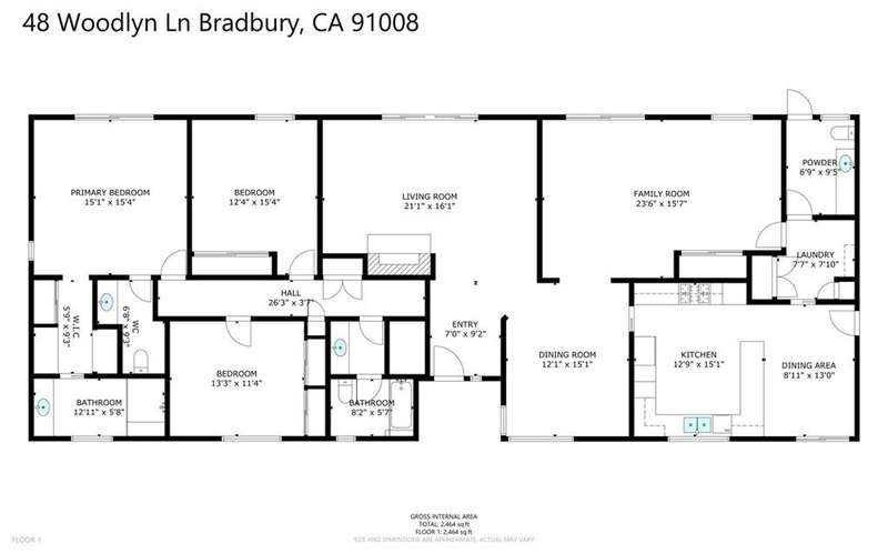 Incredible Views in Bradbury Oaks Estates! Situated in the prestigious gated community of Woodlyn Lane, this top-of-the-hill 2.45-acre property offers a rare combination of privacy, space, and breathtaking scenery—mountain views greet you looking North, while the South view showcases dazzling city lights at night. The single-level, 4-bedroom, 2.5-bath home boasts wood floors, abundant crown molding, fireplace and Anderson windows, ensuring a quiet and comfortable interior. Zoned for horses, the estate includes upper and lower corrals, and versatile land use options—keep the lower corral for equestrian activities and repurpose the upper area for a guest house or expansion. Mature trees and natural landscaping create a serene, secluded setting, with tree-lined roads enhancing the community’s charm and exclusivity. While the home offers timeless interior finishes and a generous footprint, it’s ready for updating—presenting a rare opportunity to create a custom estate in one of Southern California’s most sought-after locations.