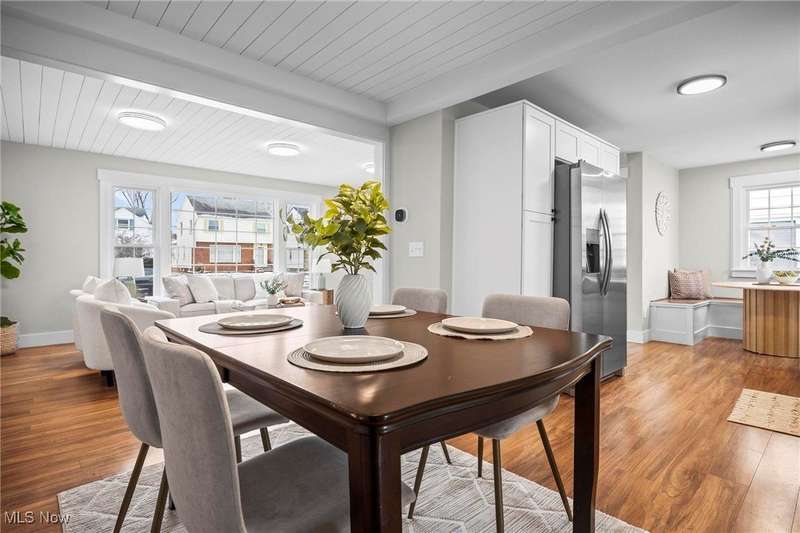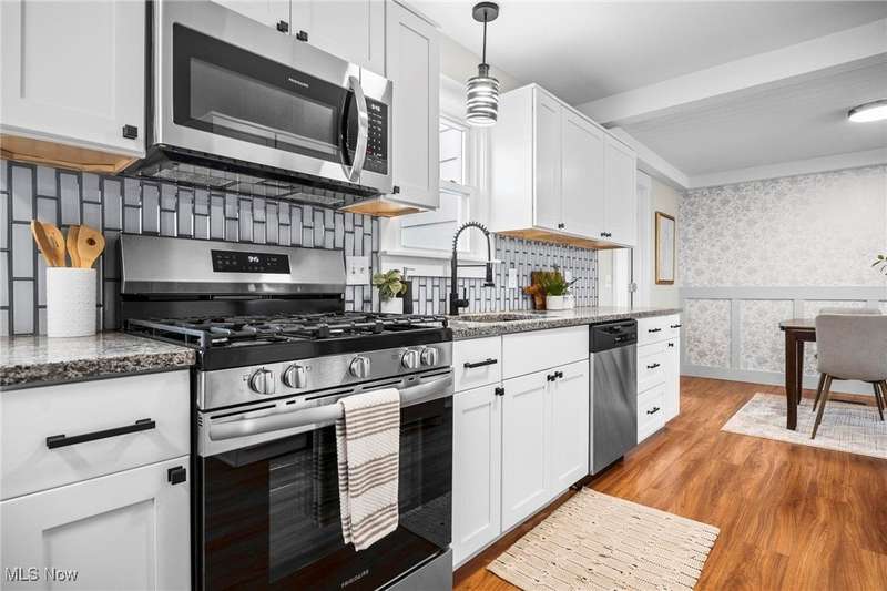 Experience elevated living at 4059 Wilmington Road in South Euclid. This fully renovated 3-bed, 2.5-bath home offers 1,560 sqft of refined style plus an additional 500 sqft of finished lower-level living space. Step inside to a bright, sophisticated interior featuring modern lighting, fresh neutral tones, and white shaker cabinetry that anchors the stunning, chef-inspired kitchen. The seamless floorplan flows effortlessly into the dining and living areas-perfect for both everyday comfort and elegant entertaining. Retreat to the private primary suite, thoughtfully designed with contemporary finishes and a spa-like feel. Convenience is elevated with first-floor laundry, rare for the area and ideal for modern lifestyles. The finished basement expands your living possibilities-ideal for a media room, home gym, office, or recreation space. This luxury renovation blends timeless style with updated functionality, offering a truly move-in-ready home in a desirable South Euclid neighborhood. A must-see for buyers seeking modern elegance and turnkey living.