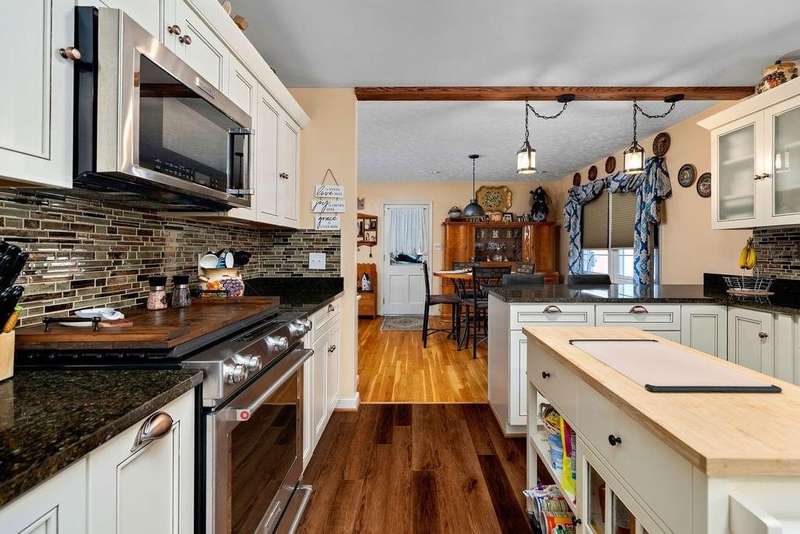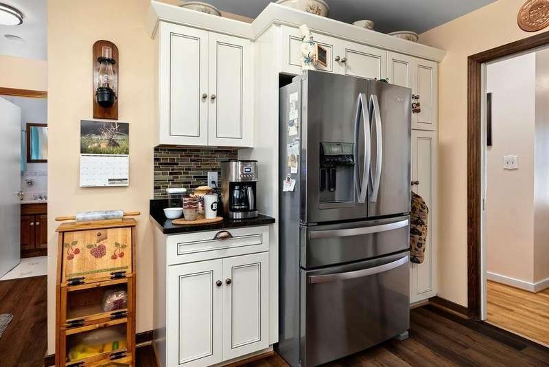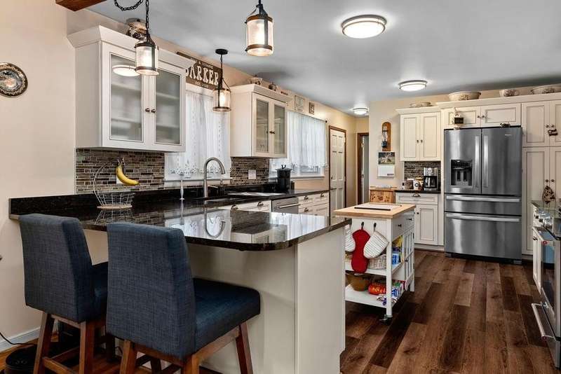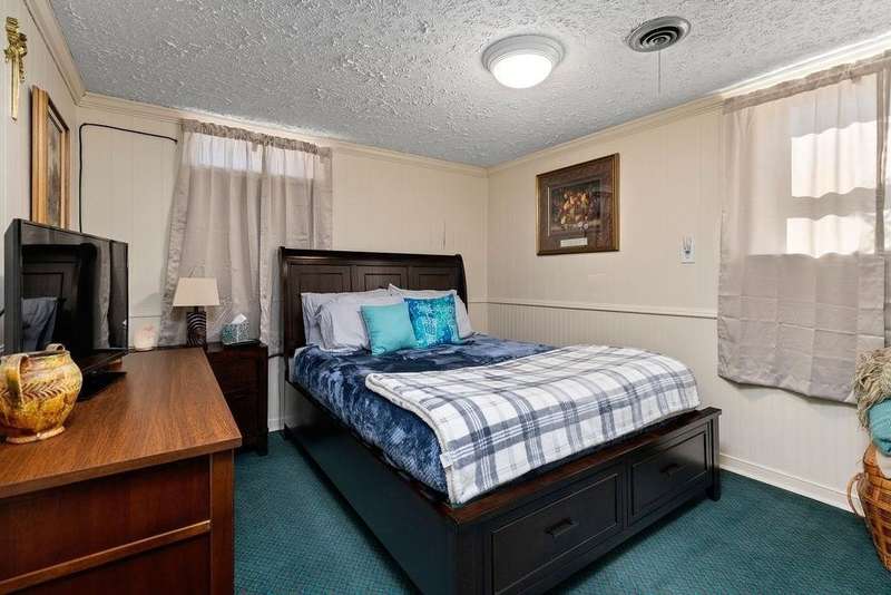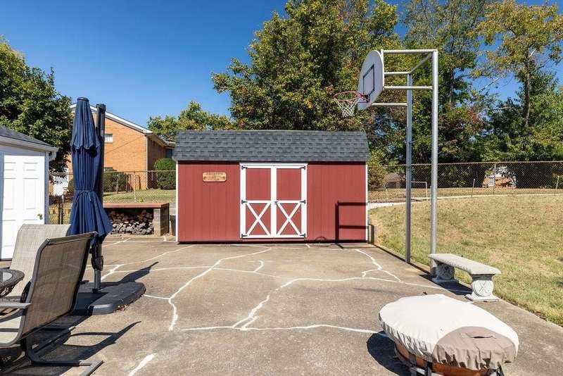 Nestled on a tranquil dead-end road, this charming family home offers both privacy and convenience. Boasting 4-5 spacious bedrooms and 2 full bathrooms, it provides ample space for a growing family. The full basement is a versatile haven, featuring a bar, office, laundry room, and rec room, perfect for entertaining or relaxation. Warm up by one of the two cozy fireplaces or enjoy outdoor activities in the fenced backyard, complete with a basketball court. The home has undergone numerous upgrades, including a completely remodeled kitchen with custom cabinets and new appliances, enhancing both functionality and style. Gleaming hardwood floors adorn the main level, while replacement windows and a new roof ensure durability. A new, built-on-site storage building and a 2-car garage add to the home's practicality. Ideally located, it offers easy access to downtown, shopping at the I-64 interchange, and is just minutes from the hospital, making it a perfect choice for families seeking comfort and convenience.