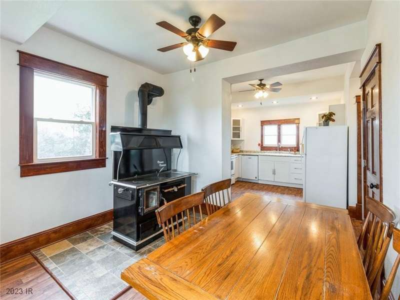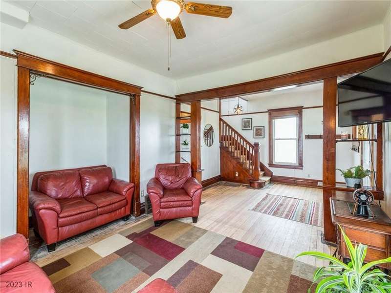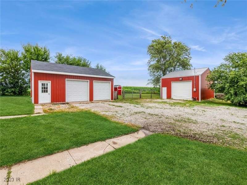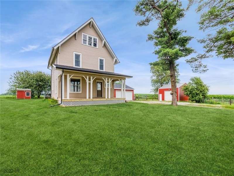Welcome to this great farmhouse on just over 1/2 acre. So quiet and peaceful surrounded by farm ground just outside the city limits. This property includes a new shop on 6 slab that was added in 2020 with 200-amp service. A second additional detached garage for storage and parking as well!1560 sq ft of living space inside the home offers 4 bedrooms, 1 bath, a nice open entry/foyer, family room, and an updated kitchen. The updated kitchen opens to the dining room making it a great entertainment/family space. A long list of updates have been completed, including, newer windows, new roof, updated water lines to pex plumbing, new furnace, new doors, fixtures, new water heater and new appliances. Hardwood floors throughout! It is a must see!