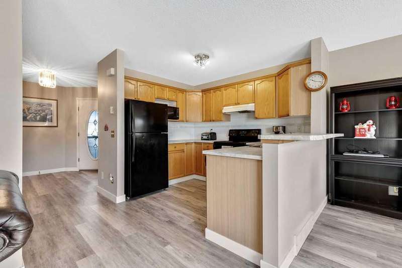 Welcome Home!!! This 1434 sq ft 2 storey is nestled in the sough after community of Harvest Hills! When you step into this home you can tell it’s been well taken care of. Vinyl Plank flows throughout the entire home. Greet your guests in the large entrance way, which opens into the large kitchen and living room area. The kitchen has a brand new countertop, lots of counter and cupboard space, a pantry and breakfast bar. The living room has large windows to let the light in. main floor is capped of with a powder room. head upstairs, both up and down stair cases has vinyl plank installed. The upstairs has 3 bedrooms and a large bonus room, great spot to unwind before bed. The large master bedroom has a 4 piece ensuite and walk in closet. there is another 4 piece bathroom to cap off the upper floor. Outside we have a large deck in your private backyard, perfect for BBQ'ing with your friends. the front yard has a front porch that has ben enclosed and an attached single garage. Brand new windows installed last year, roof, soffit, fascia and eavestrough all replaced this year. easy walk to T&T Supermarket, shopping and restaurants. This place is perfect for a family, or first time homebuyer! don't miss out!!