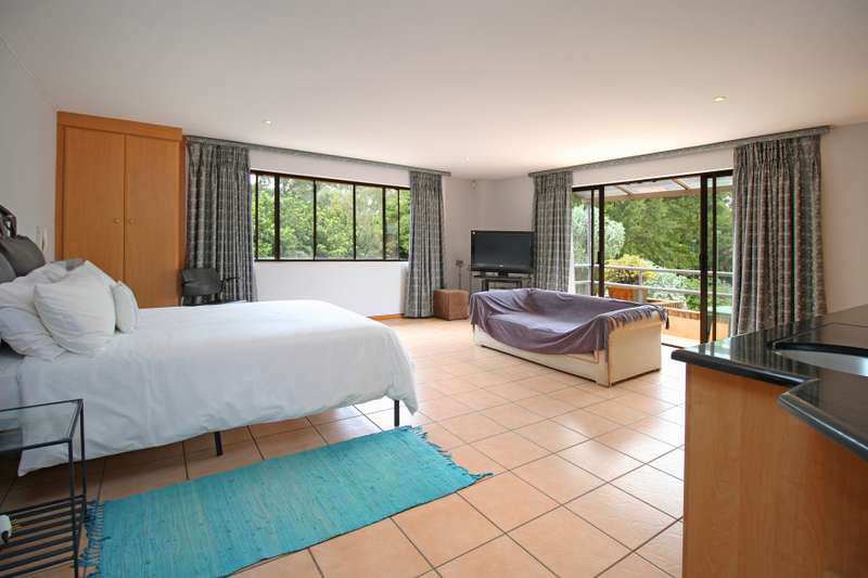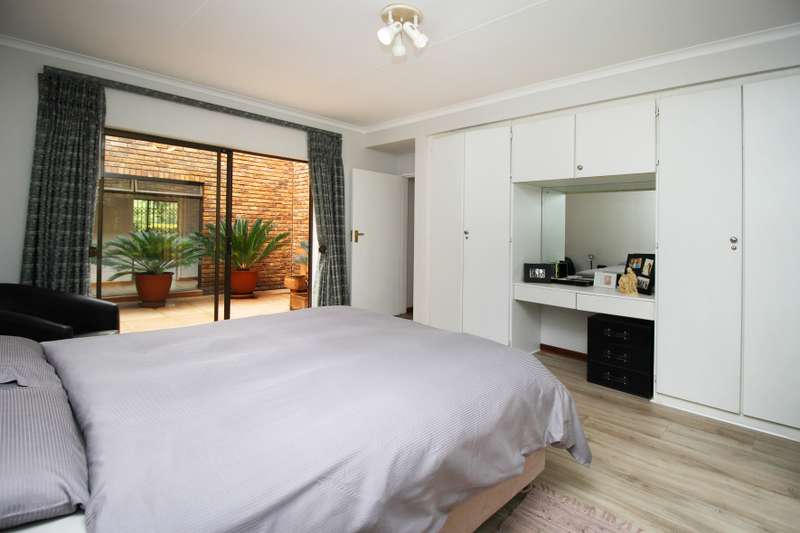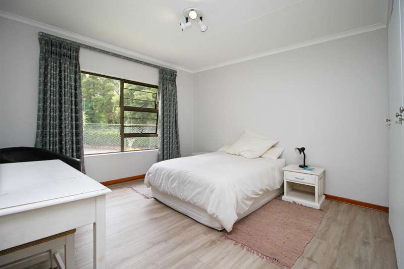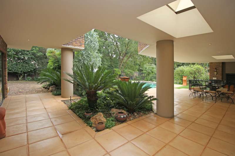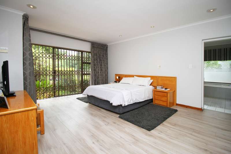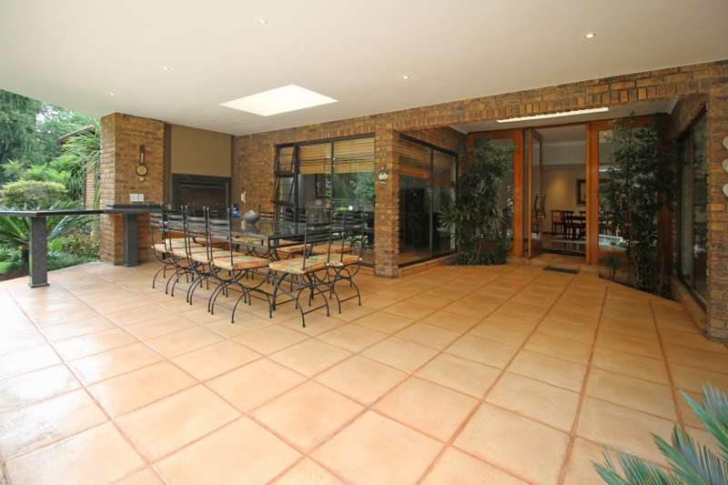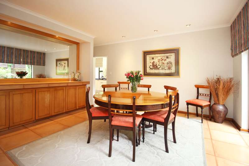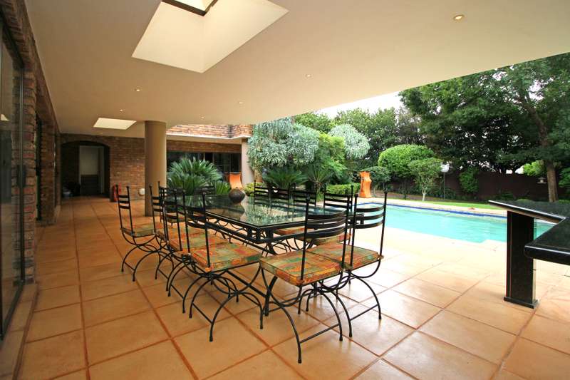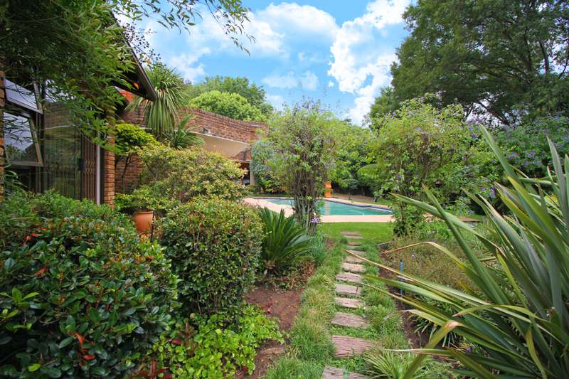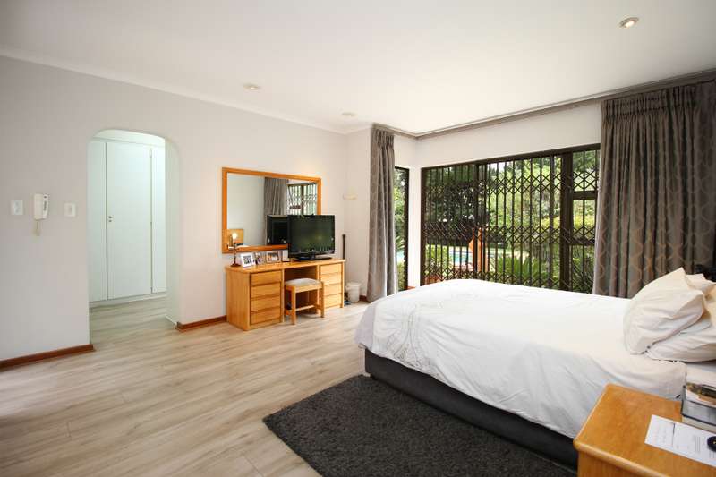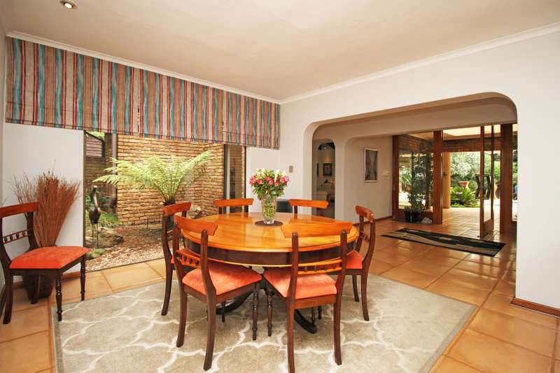 What constitutes an exceptional family home? It’s one that combines inviting living spaces that are comfortable and functional with an atmosphere that makes loved ones and friends want to gather to create lasting memories. This is that home. Perched in an elevated position at the top of a gently, sloping driveway, one’s eye is drawn to the poolside paradise – a crystal-clear pool, fringed by beautifully curated tropical foliage and covered patio set off to one side. It perfectly lends itself to both moments of quiet relaxation and laughter-filled gatherings with family and friends. The main entrance of over-sized glass windows and wooden pivot door opens into a light, bright, welcoming foyer. Beyond the foyer you’ll find a formal dining room. To the left is the large formal lounge and a guest cloak. To the right, the comfortable family room houses a wood-burning fireplace. The superb, eat-in kitchen, with adjacent scullery, is ideal for family meals and as a culinary powerhouse for celebrations and entertaining on a broader scale. The secured bedroom wing (all north-facing) provides plenty of space for rest and relaxation. There is a spacious Master Suite (ensuite bathroom + dressing area), 3 additional good-sized bedrooms and 2nd full bathroom. Off the main entrance, to the right, a separate entrance leads to a lovely guest suite located above the double garage. The large, single room with sleeping, sitting and bar kitchen zones plus separate ensuite bathroom and sliding door to outside balcony with views over the pool and garden is perfect for guests or as a work from home space. A ‘move-in-ready’ home just moments away from the vibrant local Oaklands Shopping Centre and M1 access points. Notable Features: Low maintenance Klinker Tennis Court Guest Suite Light & bright with extra-large windows Solar Installation 4 geysers (1 solar) Double garage + 3 carports Security – electric fencing, beams, security gates, linked to armed response