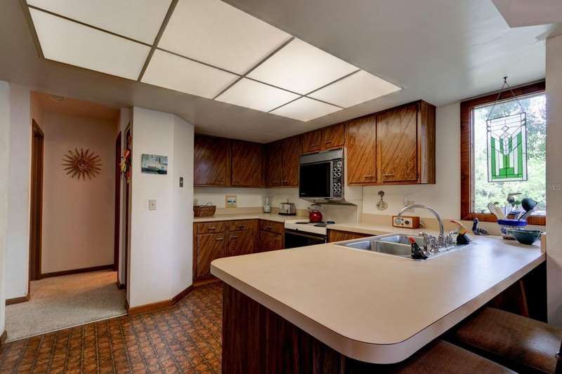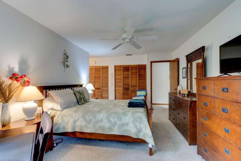 Welcome to this cozy furnished or can be sold unfurnished 2-bedroom, 2-bath second-story end unit condo, nestled beneath a stunning canopy of mature oak trees. This condominium community, Fairways, is a peaceful retreat that offers privacy, nature, and convenience all in one. The primary suite offers comfortable and privacy, while the second bedroom is ideal for guests or a home office. Two full bathrooms add to the functionality of the space. An automatic chairlift is included, providing easy access up the stepped stairway-ideal for those seeking added convenience and mobility. Please note that the Seller will remove chairlift if needed. The screened porch is accessible from the dining area, living room, and primary bedroom, offering multiple ways to enjoy indoor-outdoor living. The Fairways community amenities include heated and screened community pool & sauna, clubhouse, game room, library & full kitchen, tennis courts. Located just 5 minutes from the beach and close to shopping and dining. You have easy access to Daytona Beach, St. Augustine, Jacksonville and Orlando. Condo fees include water & trash, assigned parking, plenty of visitor parking. Association approval is required upon purchase & rentals. 30-day minimum rental period. Whether you're seeking a full-time residence, vacation home, or investment property, this condo is waiting for you.