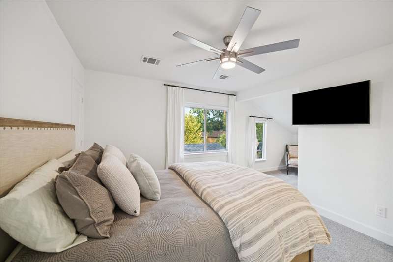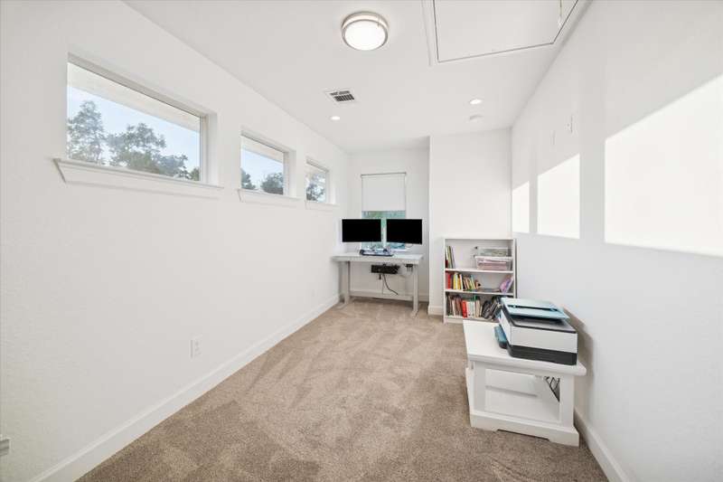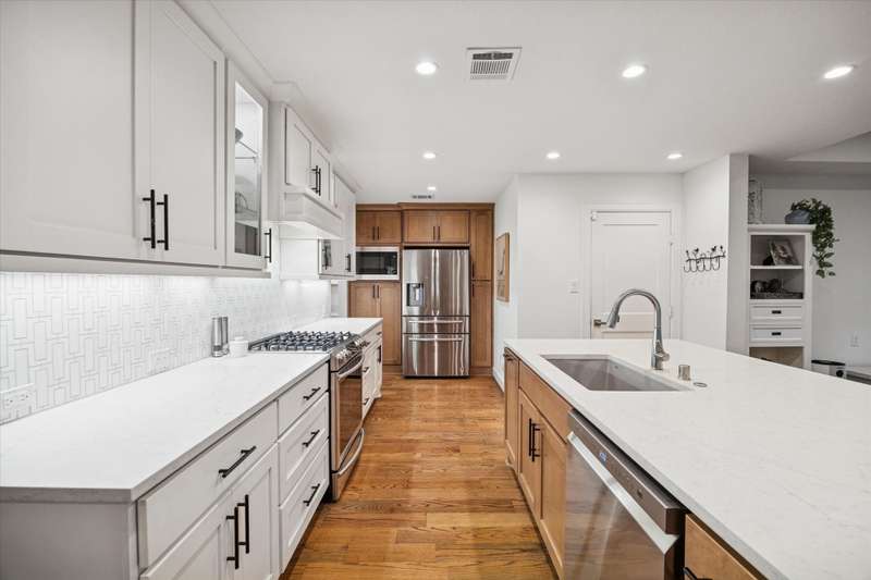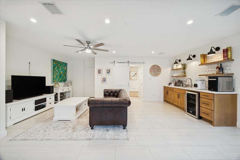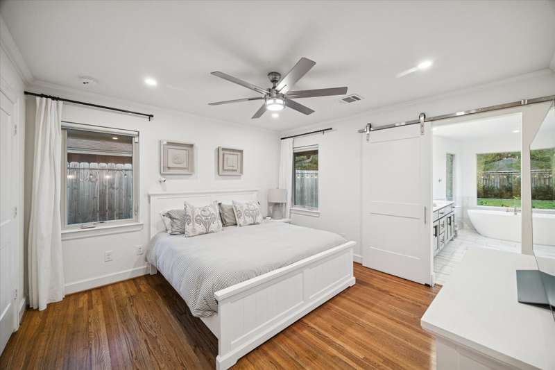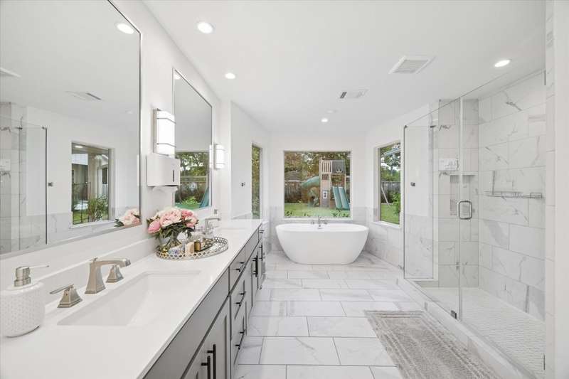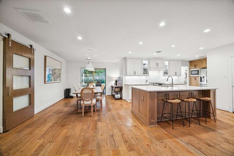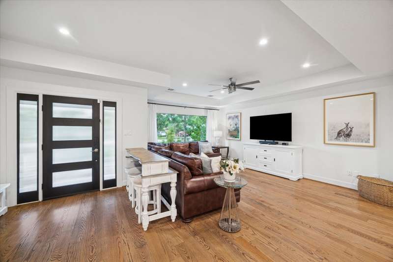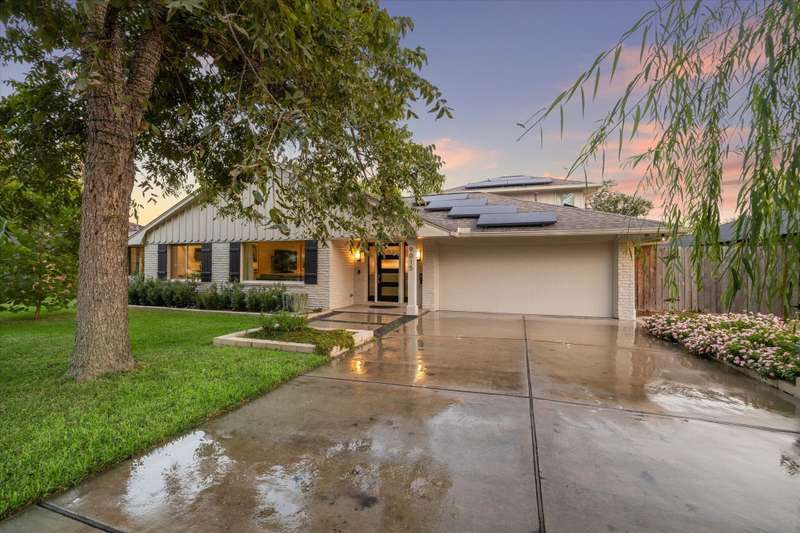 Stunning Spring Branch gut-renovated home with gorgeous curb appeal. This elegant home offers clean lines and modern touches, with a dream chef's kitchen and open floor plan perfect for entertaining. This ranch style gem impresses with premium red oak and tile floors, double-pane windows and 9-foot-tall ceilings dotted with recessed and designer lighting. Open-plan living and dining areas flow to a breathtaking kitchen with custom Shaker cabinetry, a pantry and stainless steel appliances. A huge family room with massive windows and a wet bar flows to the paver patio and fully-fenced south-facing yard that could easily accommodate a pool. The owner's suite features two WICs and an en suite spa bath. Two secondary beds share a full guest bath on the main level. Above, an office area opens to a secondary suite with a private bath. Wide driveway and attached garage with 200V/60 AMP service for EV charging. Generac 24kw whole home generator and Rainsoft water softener recently added.