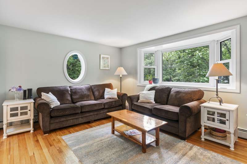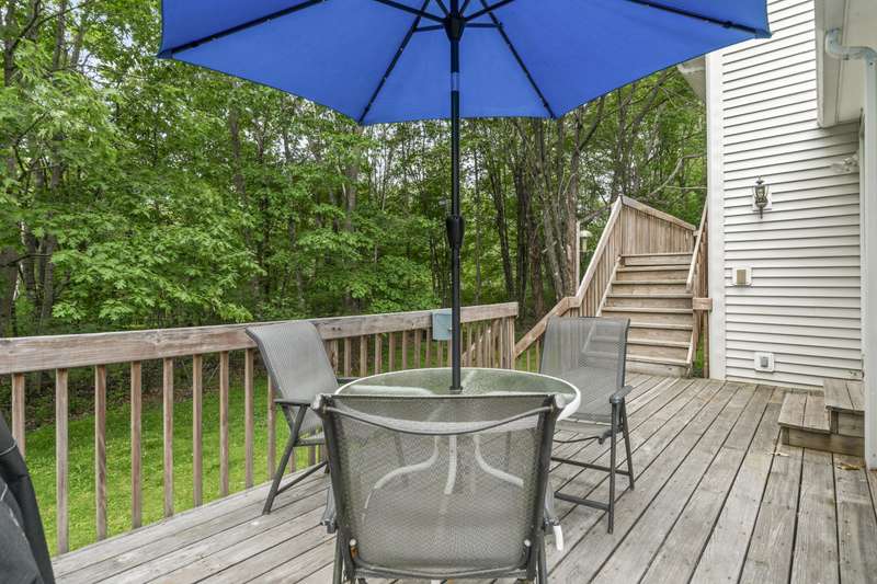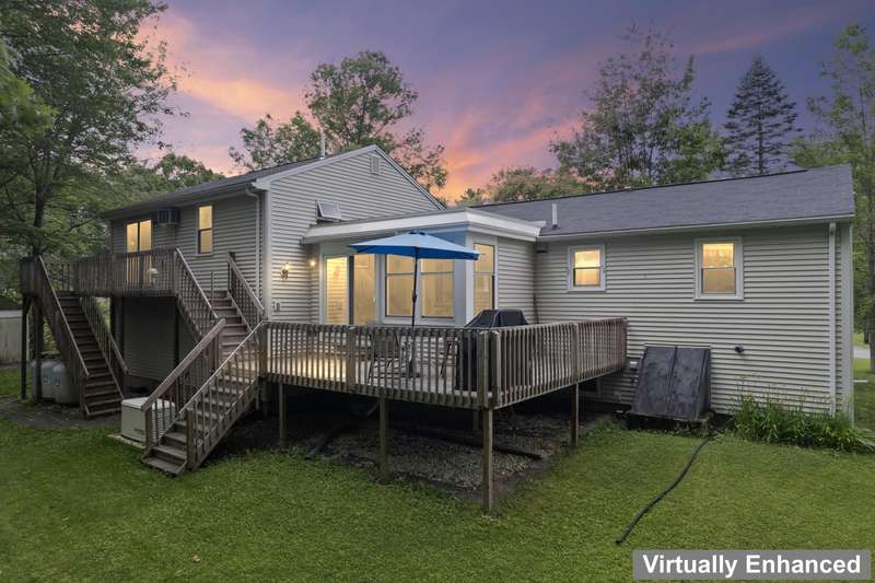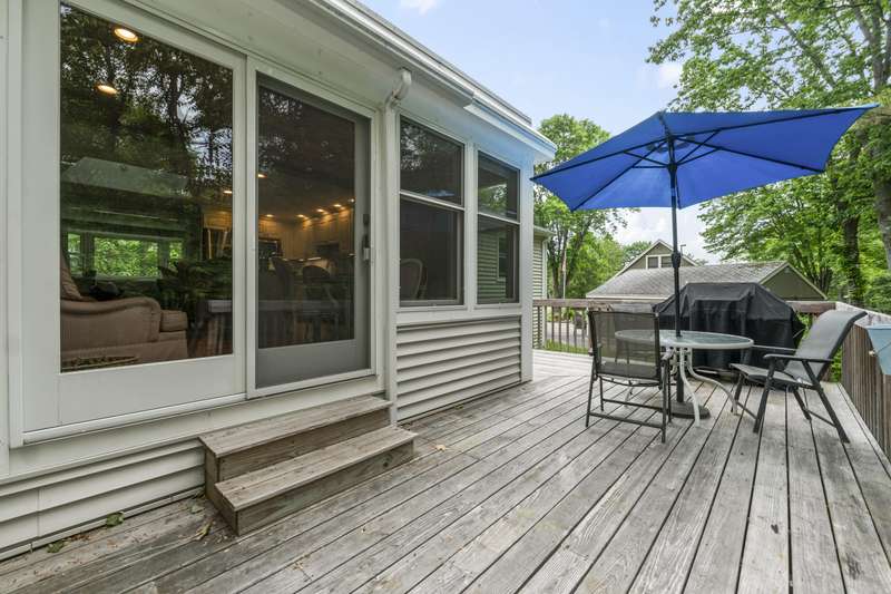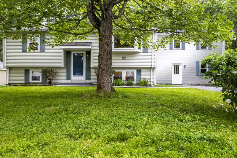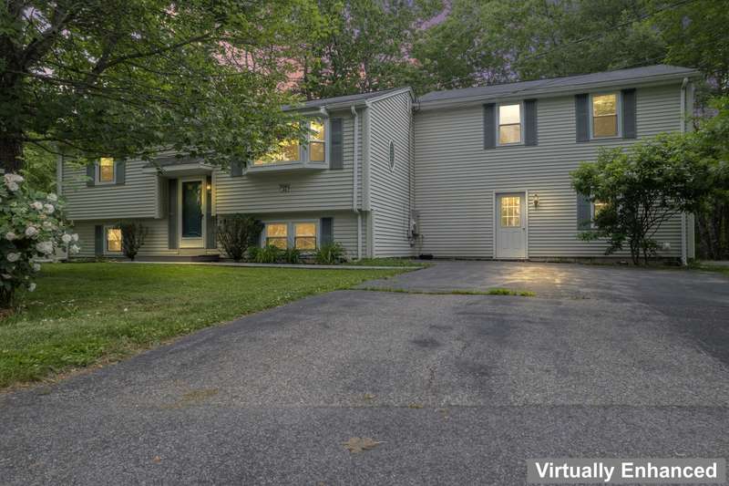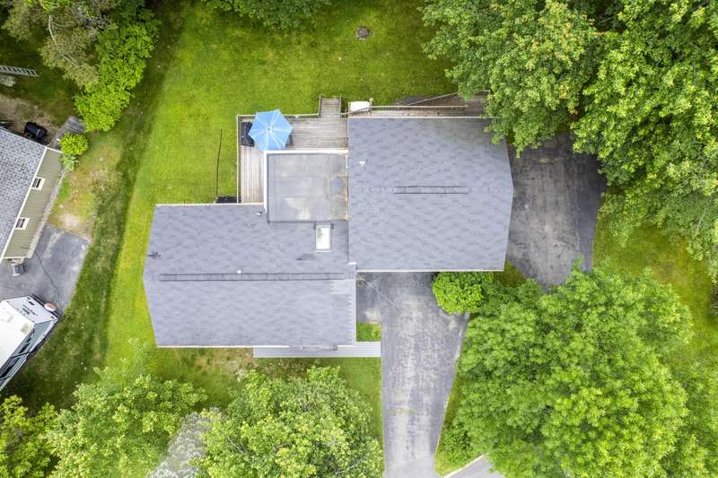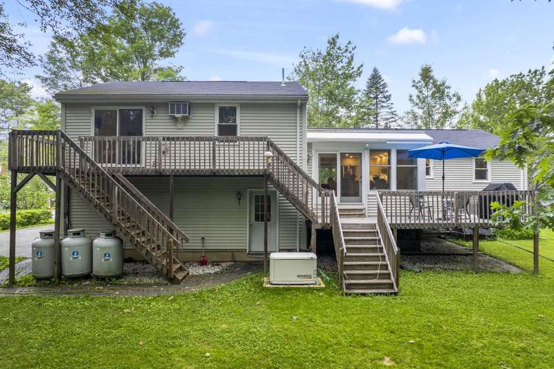 Spacious and versatile 3/4 bedroom, 3 bath home, tucked amongst the trees on private cul de sac, and handy to Yarmouth village and its many town services. Amenities include large decks, oversized two-car garage, and new whole house generator. Very spacious bedroom with full bath is set apart from the rest. This space could easily be adapted into an ADU, in-law or au pair suite. Updates completed in 2021, include new gas heating system. In 2018, new kitchen and dining room addition were added, and roofing shingles replaced. This neighborhood of compatible homes offers walkability to Royal River Park, and easy access to North Road playing fields. Town file has lower level den listed as 4th bedroom. Egress window may need enlargement.