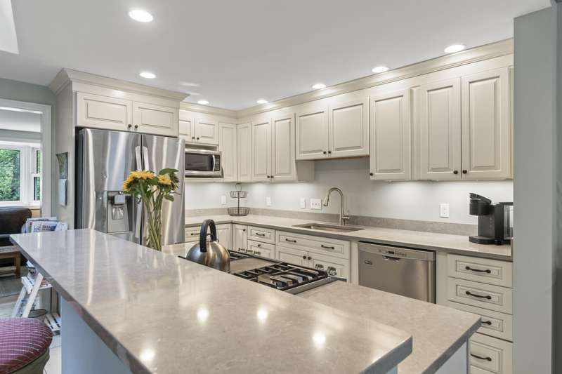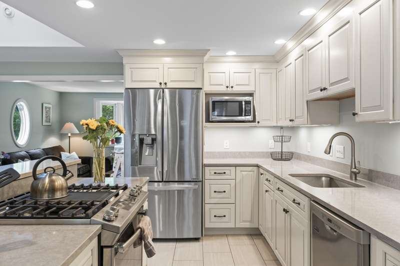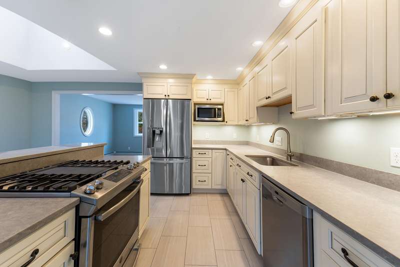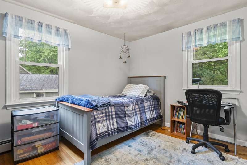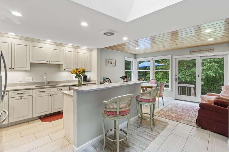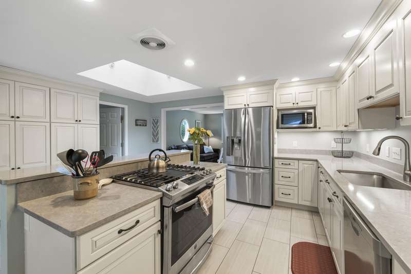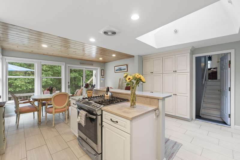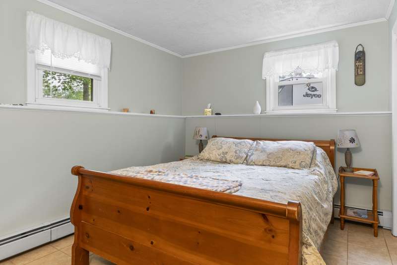 Spacious and versatile 3/4 bedroom, 3 bath home, tucked amongst the trees on private cul de sac, and handy to Yarmouth village and its many town services. Amenities include large decks, oversized two-car garage, and new whole house generator. Very spacious bedroom with full bath is set apart from the rest. This space could easily be adapted into an ADU, in-law or au pair suite. Updates completed in 2021, include new gas heating system. In 2018, new kitchen and dining room addition were added, and roofing shingles replaced. This neighborhood of compatible homes offers walkability to Royal River Park, and easy access to North Road playing fields. Town file has lower level den listed as 4th bedroom. Egress window may need enlargement.