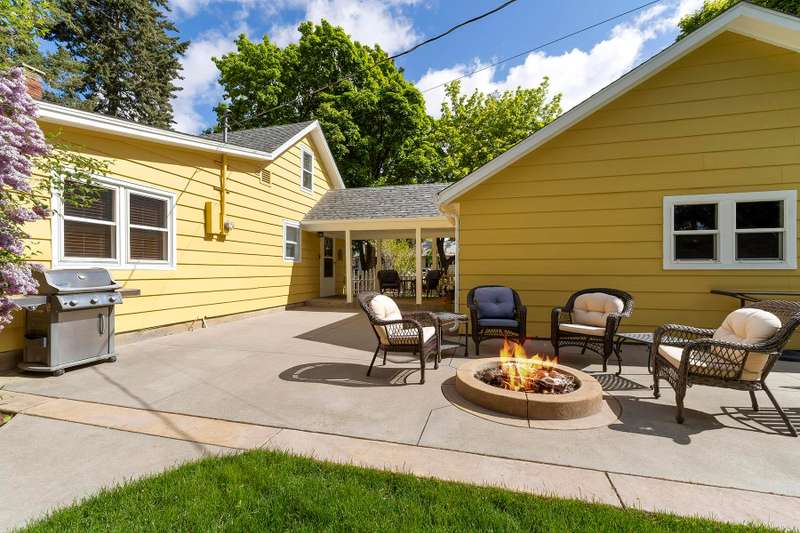 Nestled against Eastern Washington University's scenic grounds, this beautifully maintained and renovated home combines historic charm with modern comfort. Built in 1885 at the time of the city's founding, this property offers a rare opportunity to own a much-loved home of historic significance. On a double lot with lush lawn, mature trees and flowering shrubs, near Sutton Park and Turnbull Wildlife Refuge, you are just 25 minutes from vibrant Spokane. The home features updated roof, plumbing, wiring, on demand hot water, sprinklers, fresh paint, fiber internet, efficient gas furnace & AC. Includes 3 bedrooms, 2 upgraded bathrooms (one with freestanding tub), a stunning fir-cabinet kitchen with premium appliances, formal dining and large lounge with bay windows and electric fireplace. Custom blinds, cedar hardwood floors. Main bedroom includes ensuite bath and balcony. Covered breezeway leads to a 2-car garage with workshop plus storage shed and entertainer's patio with gas firepit and BBQ!